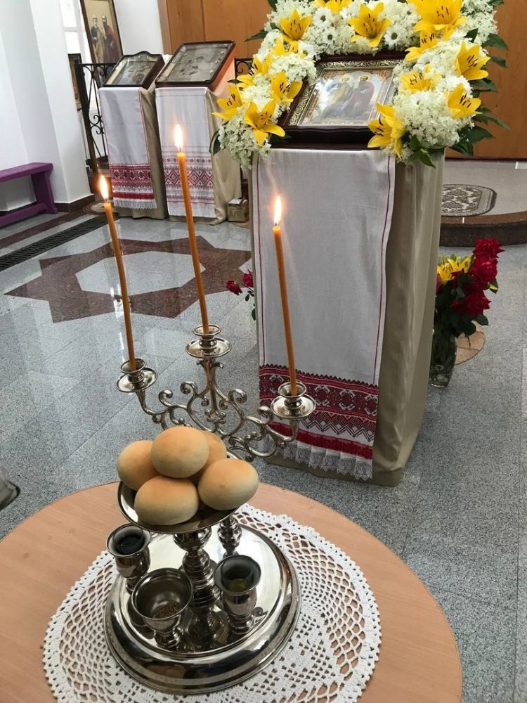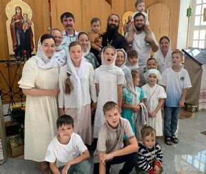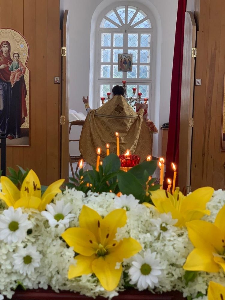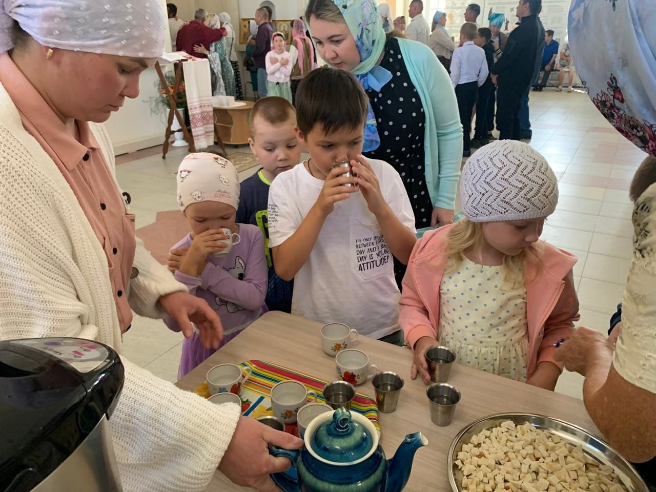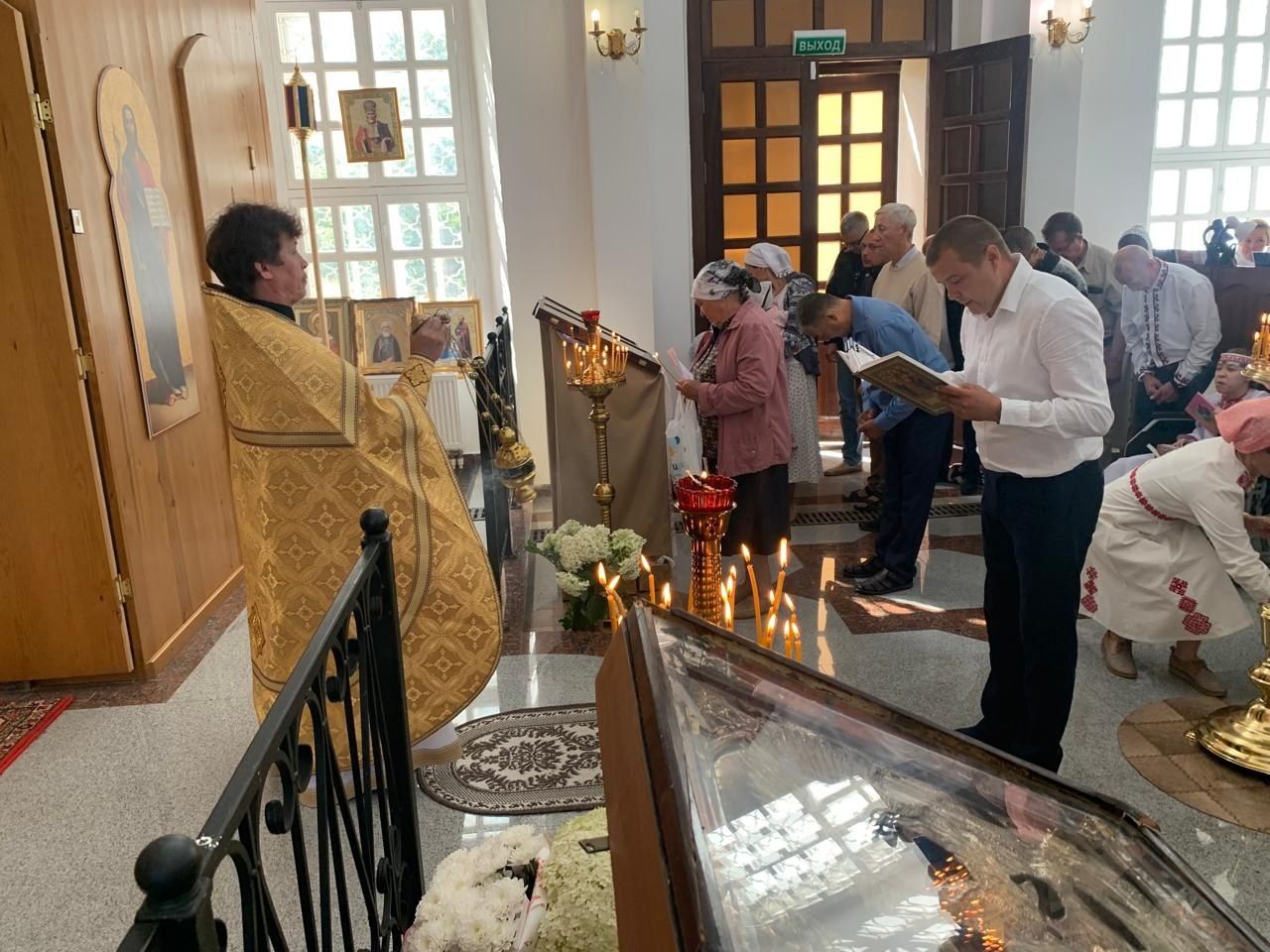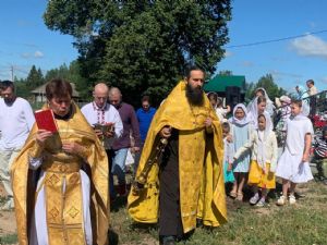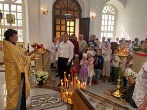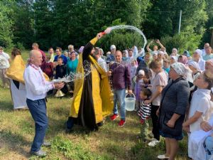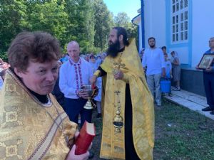 После Литургии в ознаменование престольного праздника вокруг храма был совершен крестный ход со чтением Евангелия и кроплением святой водой.