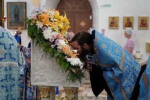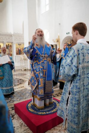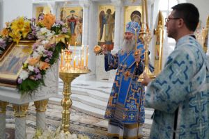 Вечером 14 июля митрополит Йошкар-Олинский и Марийский Иоанн возглавил вечерню с акафистом Пресвятой Богородице в храме иконы Божией Матери «Всех скорбящих Радость» в микрорайоне Тарханово г. Йошкар-Олы.