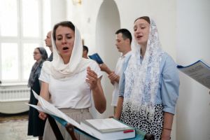 Традиционно, акафист, прославляя Пресвятую Богородицу, вместе со священством и хором пели все прихожане.
