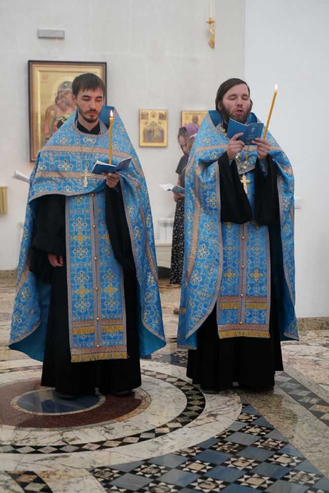 Владыке сослужили клирики храма иереи Алексий Кирюшкин, Игорь Коваль, Сергий Пуртов, а также протодиакон Михаил Козловский. Песнопения исполнял хор храма под управлением Александры Ивановой.