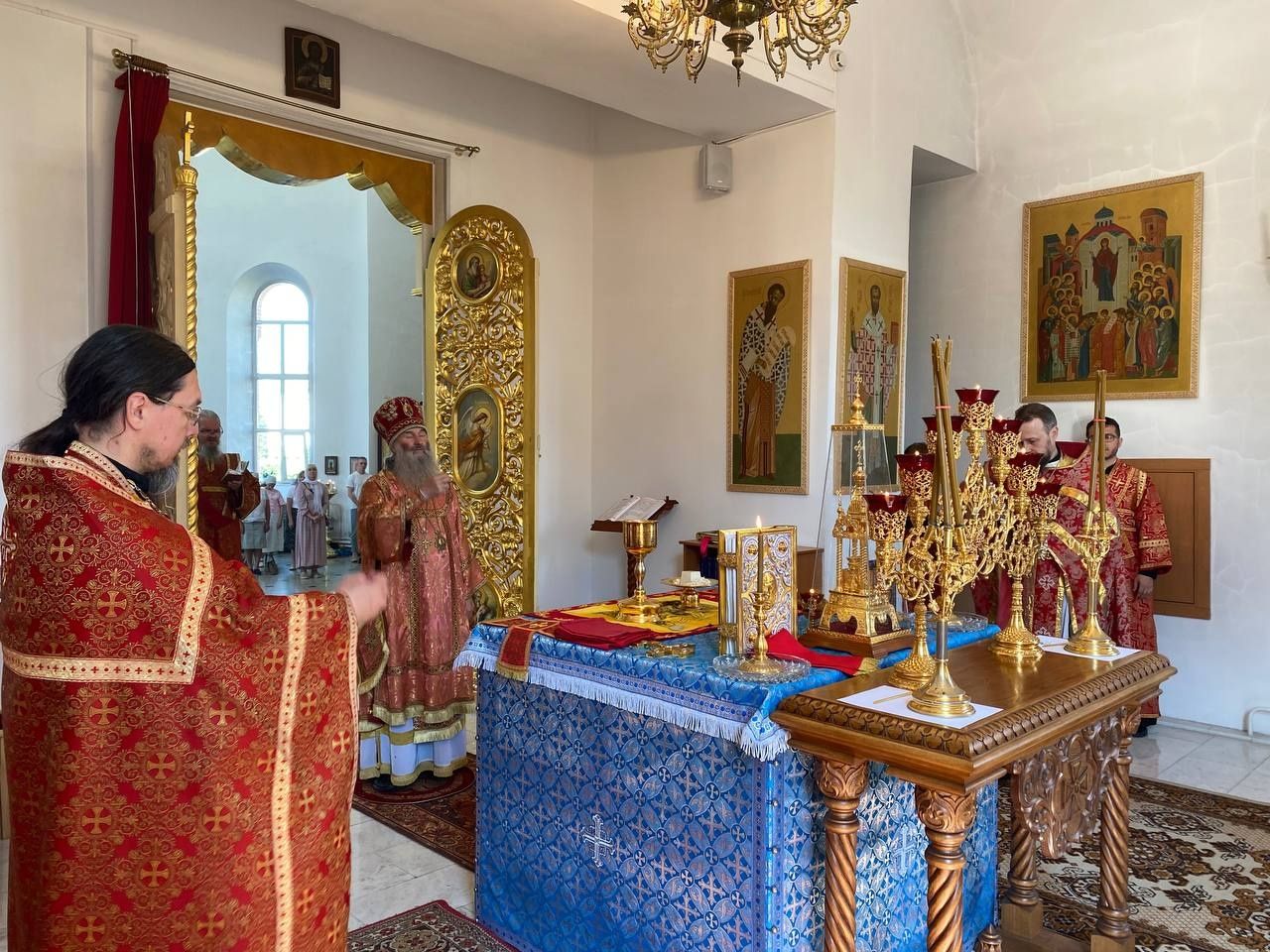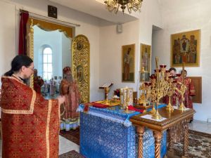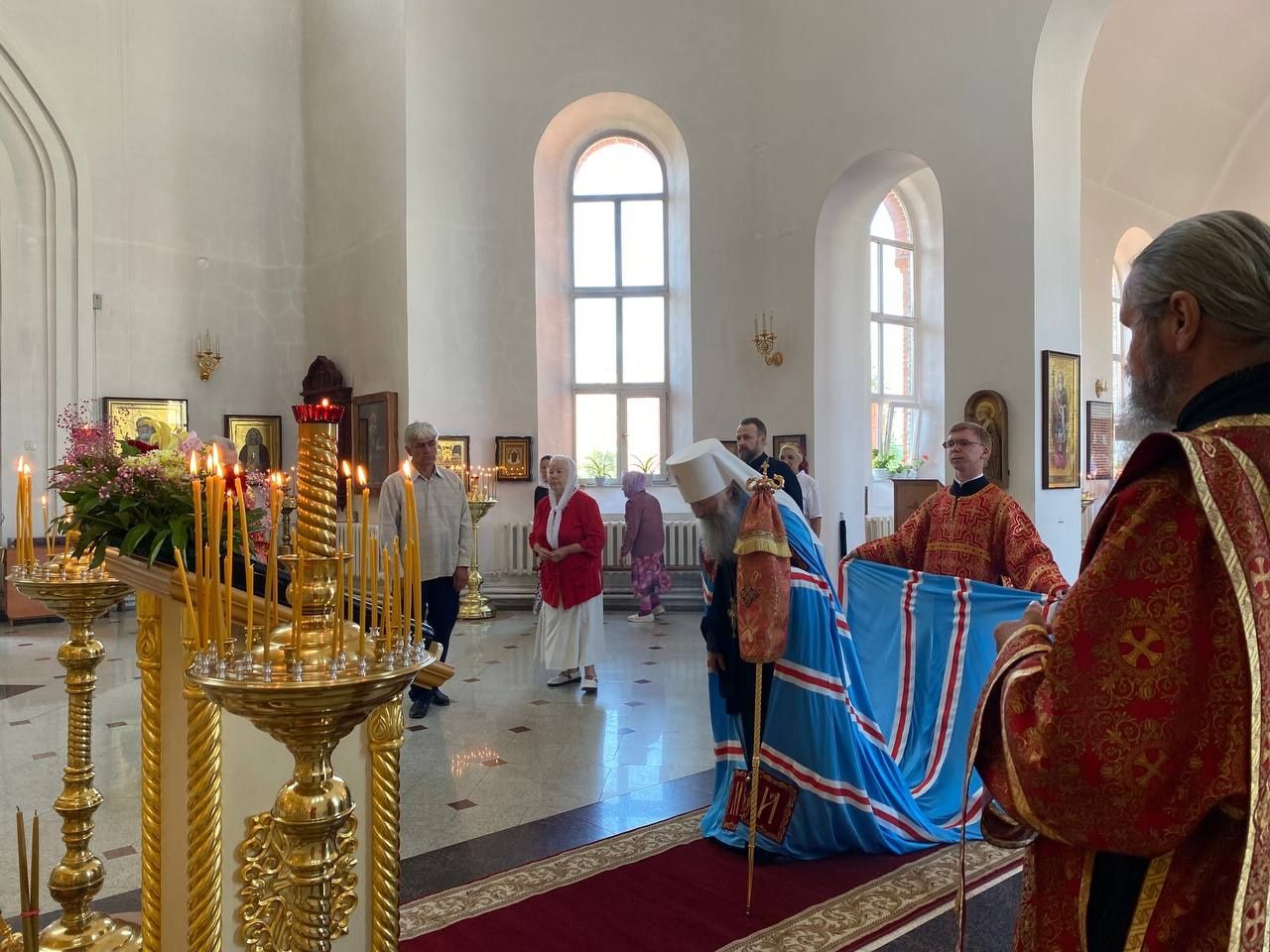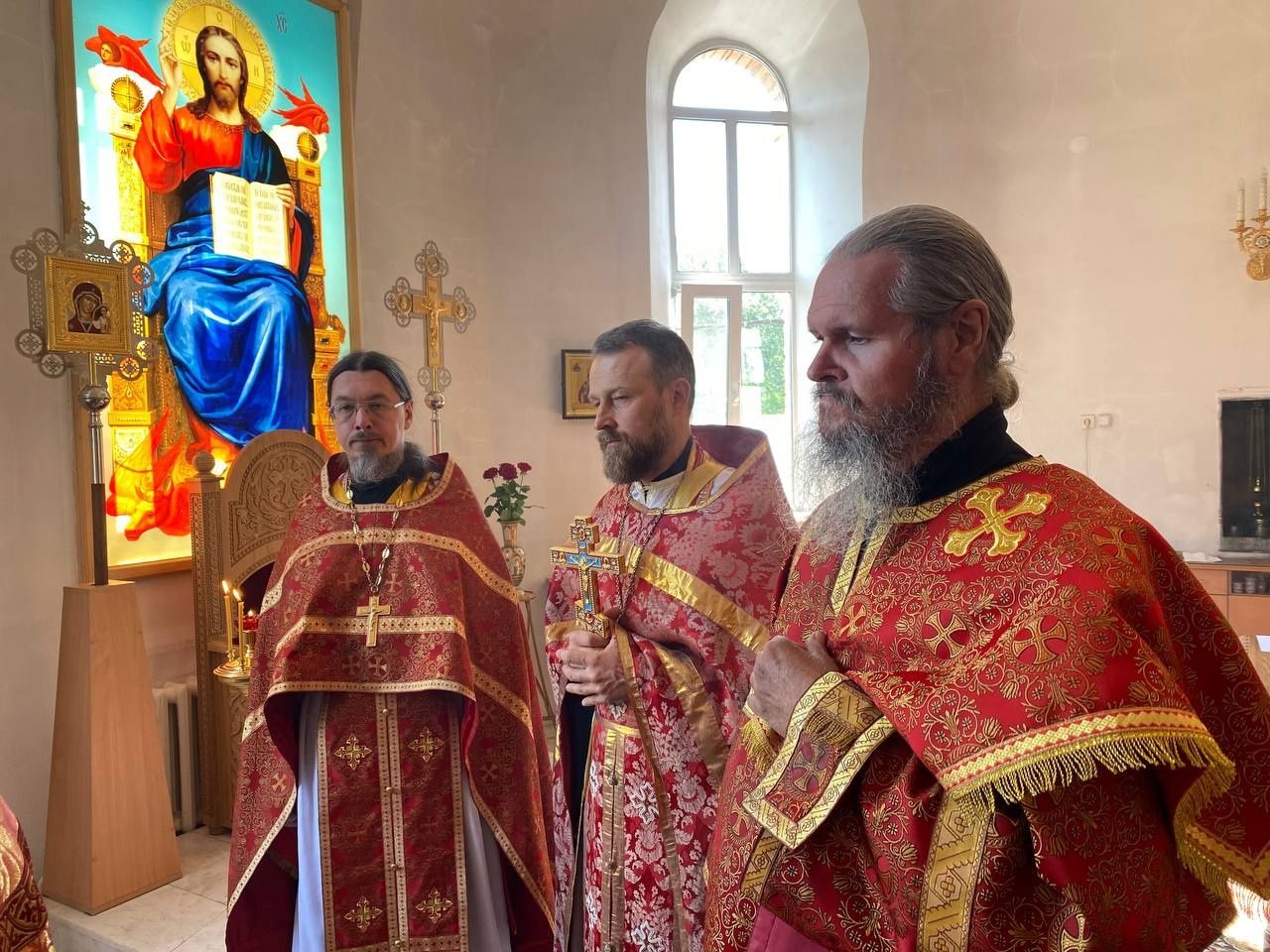 Владыке сослужили настоятель храма протоиерей Алексий Михайлов, клирики храма иерей Алексий Добиков и диакон Игорь Кочуев, а также протодиакон Михаил Козловский. Песнопения исполнял хор храма под руководством регента Ольги Михайловой.