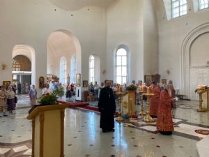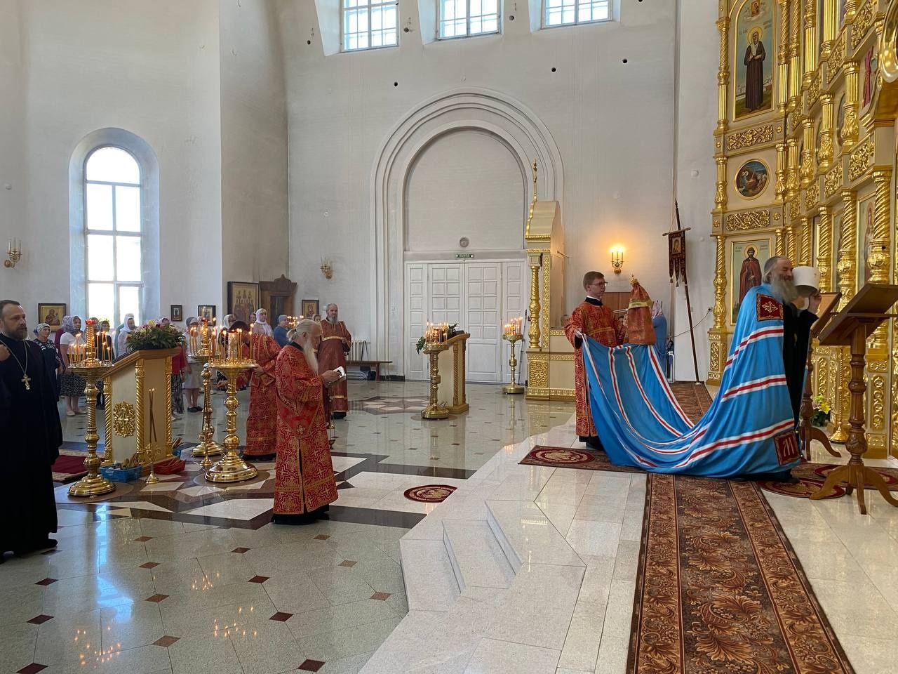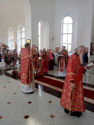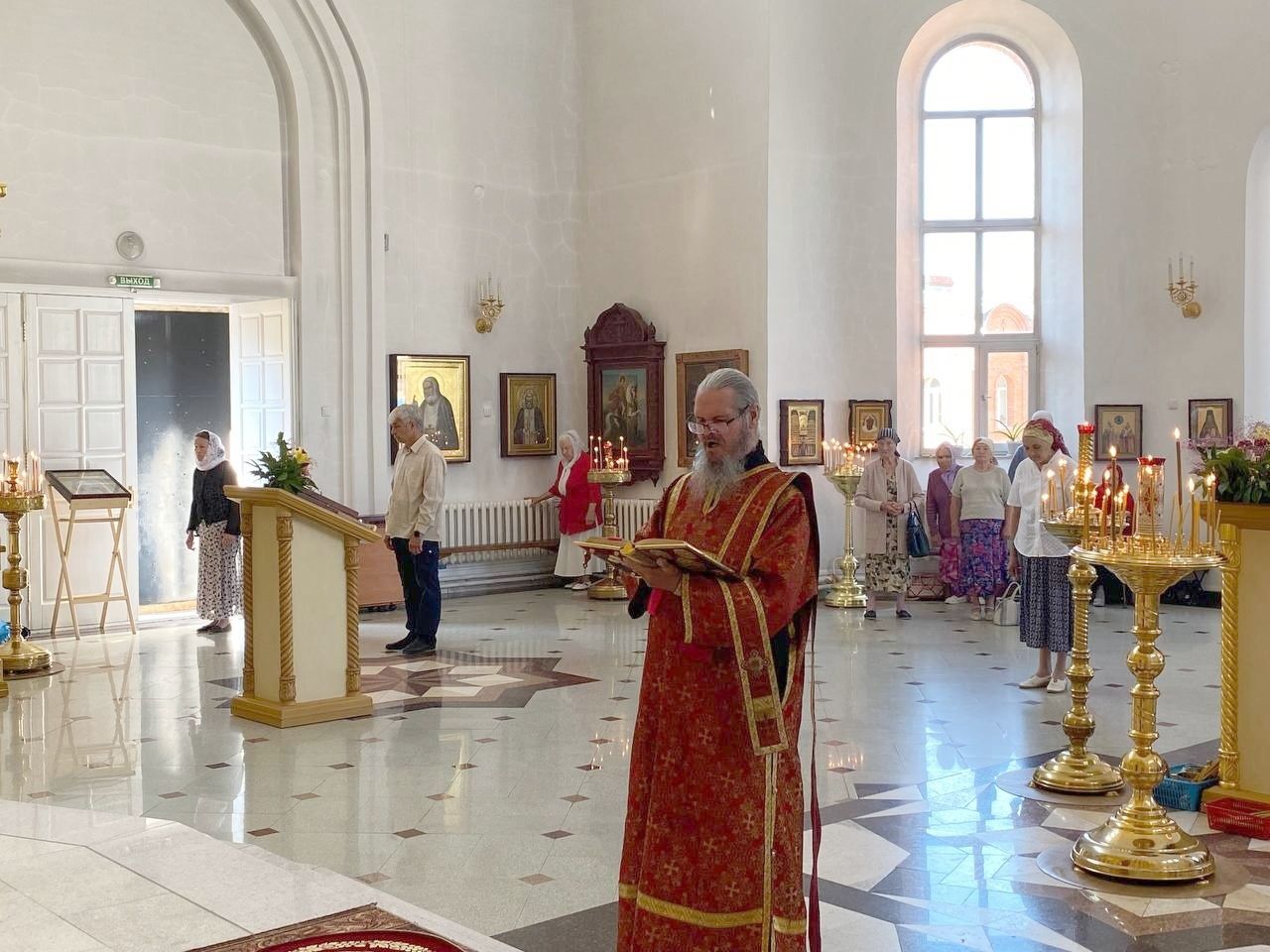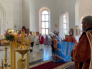 Владыке сослужили настоятель храма протоиерей Алексий Михайлов, клирики храма иерей Алексий Добиков и диакон Игорь Кочуев, а также протодиакон Михаил Козловский. Песнопения исполнял хор храма под руководством регента Ольги Михайловой.