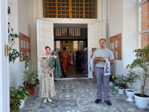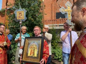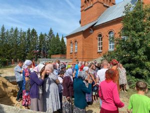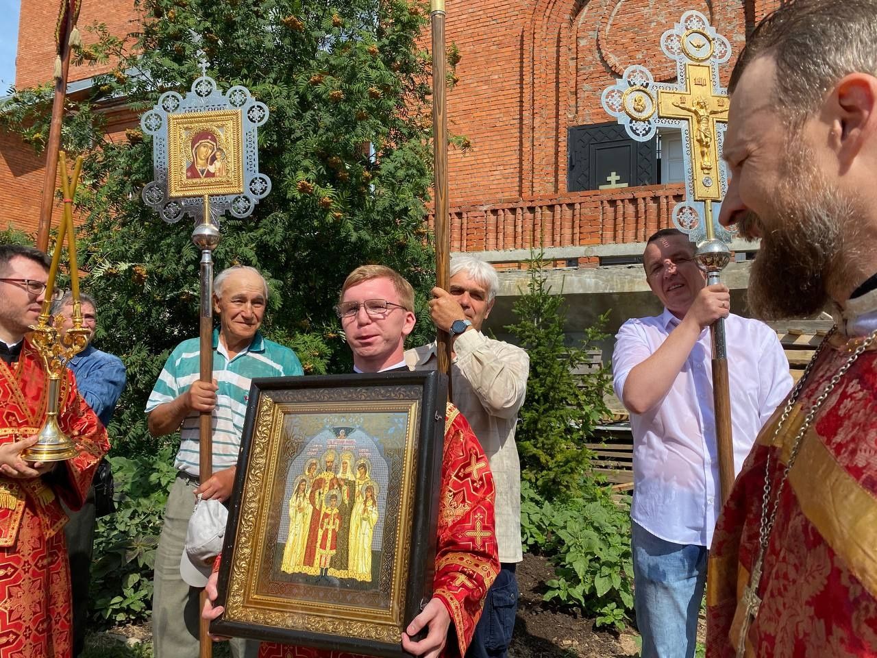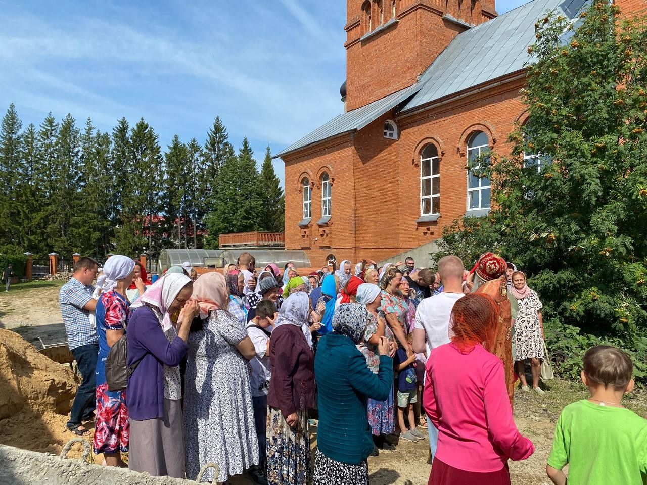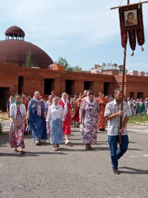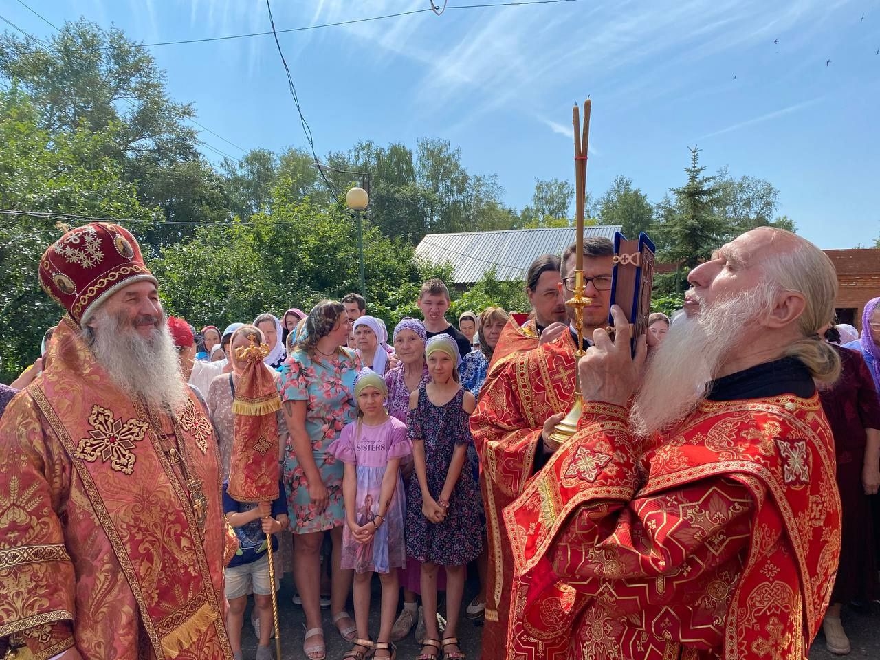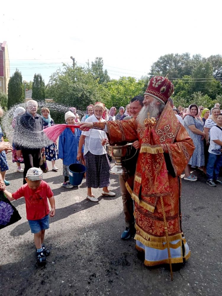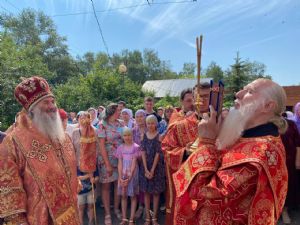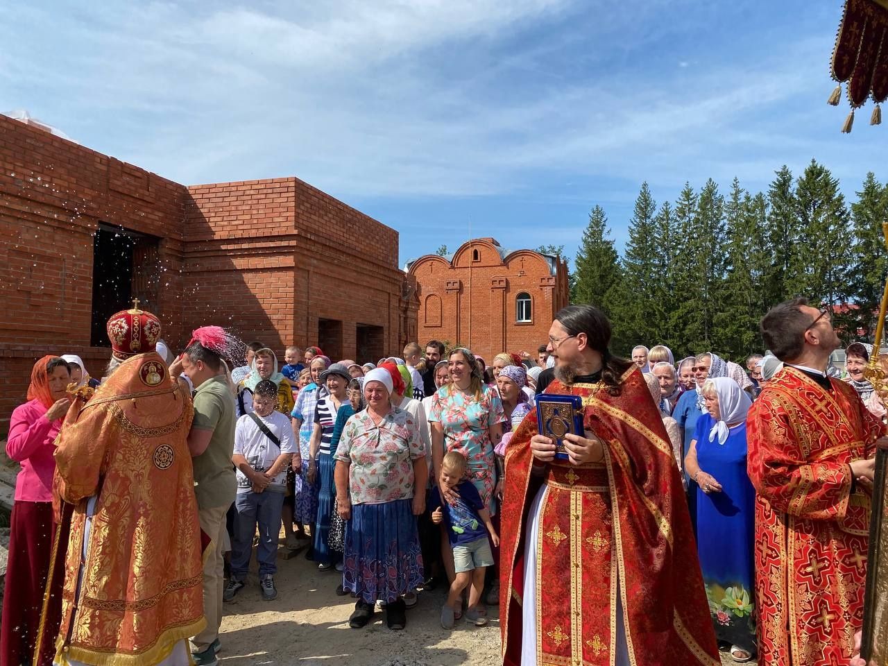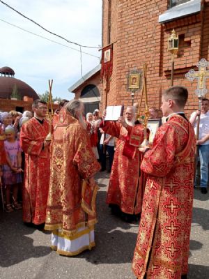 После богослужения прошел крестный ход вокруг храма со чтением Евангелия и кроплением святой водой. Затем митрополит Иоанн обратился к собравшимся с архипастырским словом.