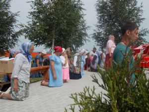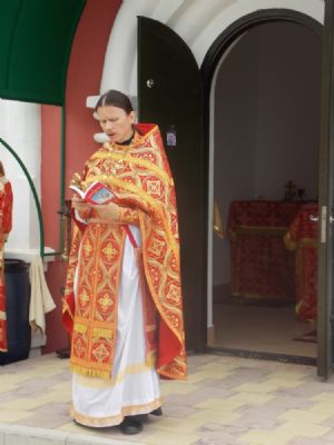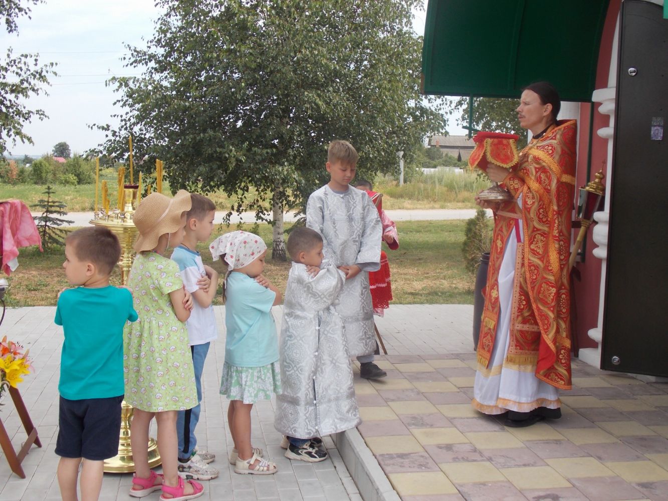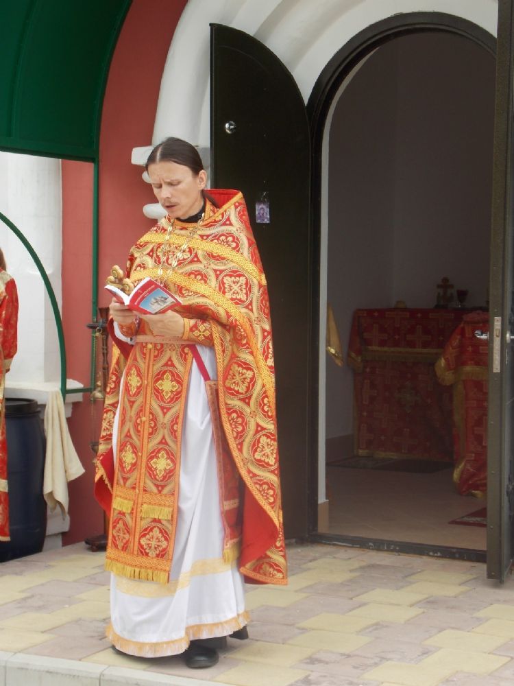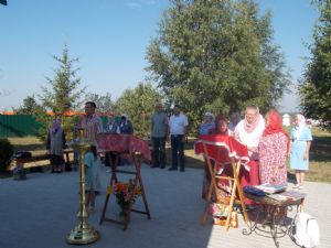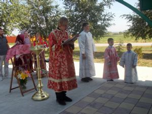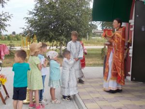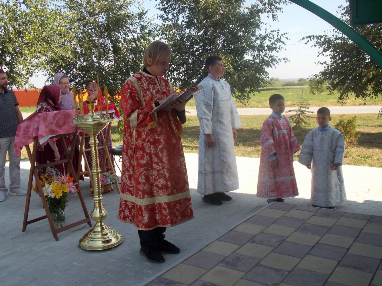 После Литургии прошел крестный ход вокруг часовни со чтением Евангелия и кроплением святой водой. Батюшка отслужил молебен и литию у мемориала воинам, павшим в годы Великой Отечественной войны.