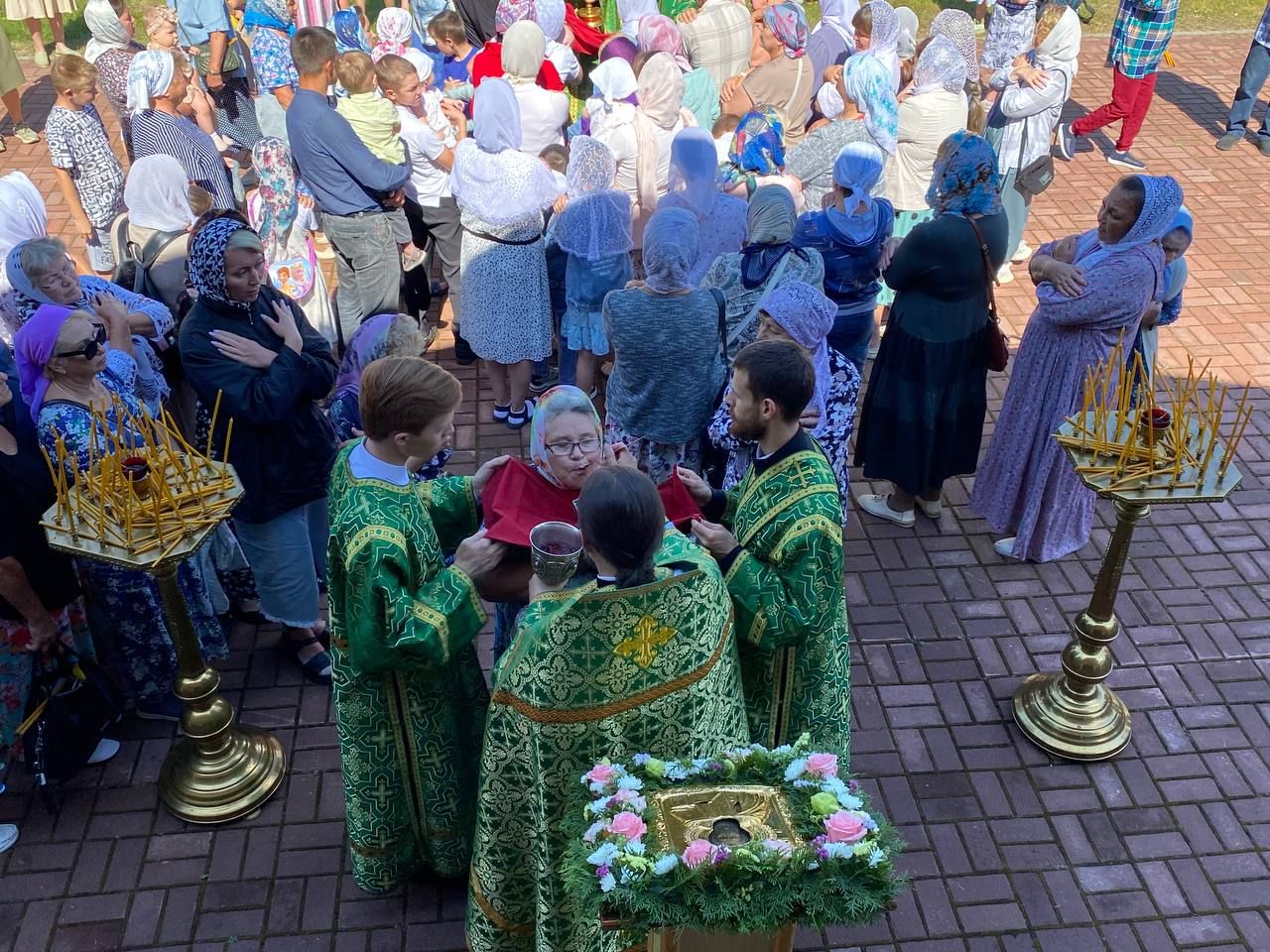 После Литургии прошел водосвятный молебен на берегу реки Студенки и крестный ход вокруг храма с кроплением святой водой.