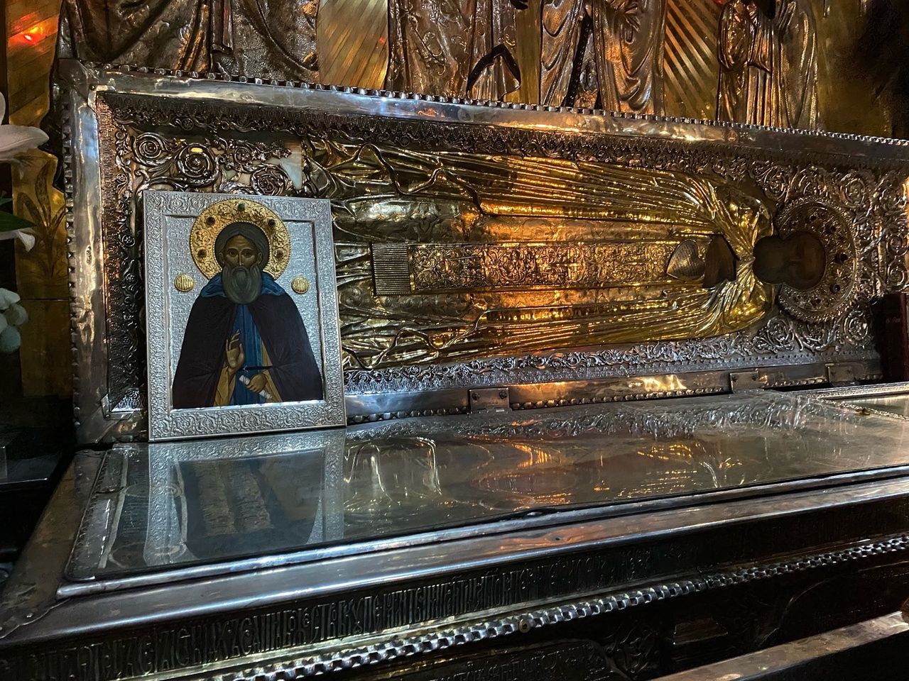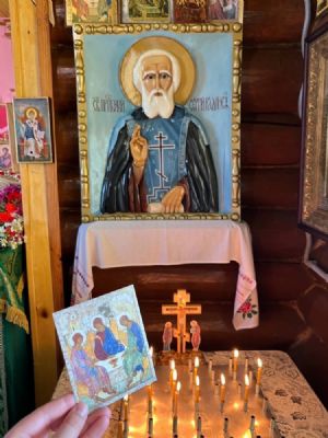 Почтить память преподобного, попросить его молитв в скорейшем возведении в поселке нового храма в его честь, собралось немало верующих. Их ожидала большая радость – к престольному празднику в дар приходу была написана замечательная икона преподобного Сергия Радонежского. Монахи Троице-Сергиевой лавры облекли ее в прекрасный оклад, украсив камнями. И самое главное – в мощевик на иконе помещена частица мощей преподобного! Отец Андрей, посетив Лавру, во время молебна в Троицком соборе приложил икону к раке со святыми мощами игумена земли Русской.