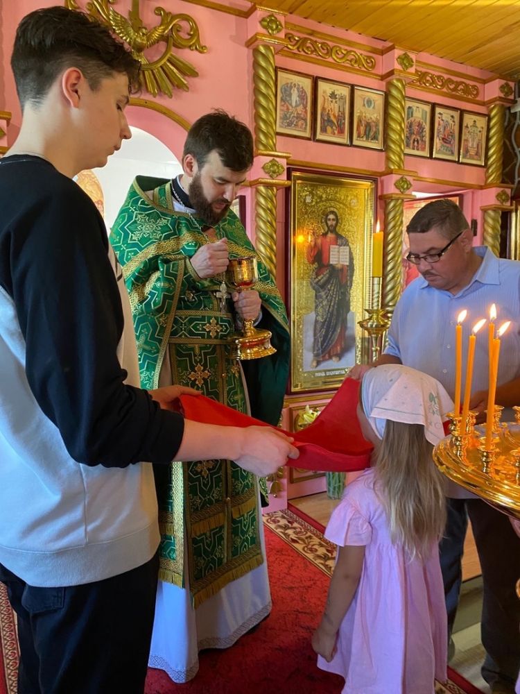 Праздничную Божественную литургию и всенощное бдение накануне совершил иерей Андрей Иванов, окормляющий приход п. Пемба. После Литургии прошел крестный ход вокруг храма со чтением Евангелия и кроплением святой водой.