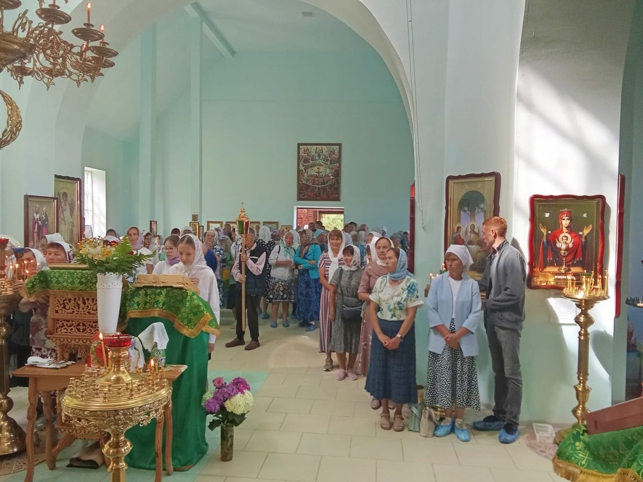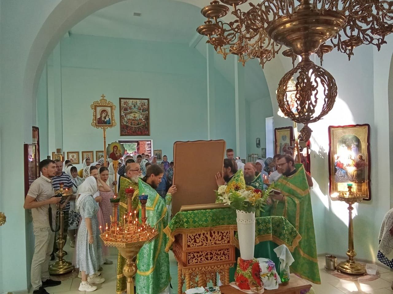 На богослужение собралось множество верующих – люди были очень рады возможности помолиться Господу на родном языке. После Литургии вокруг храма прошел крестный ход со чтением Евангелия и кроплением святой водой. В конце службы священнослужители обратились к собравшимся со словами назидания.