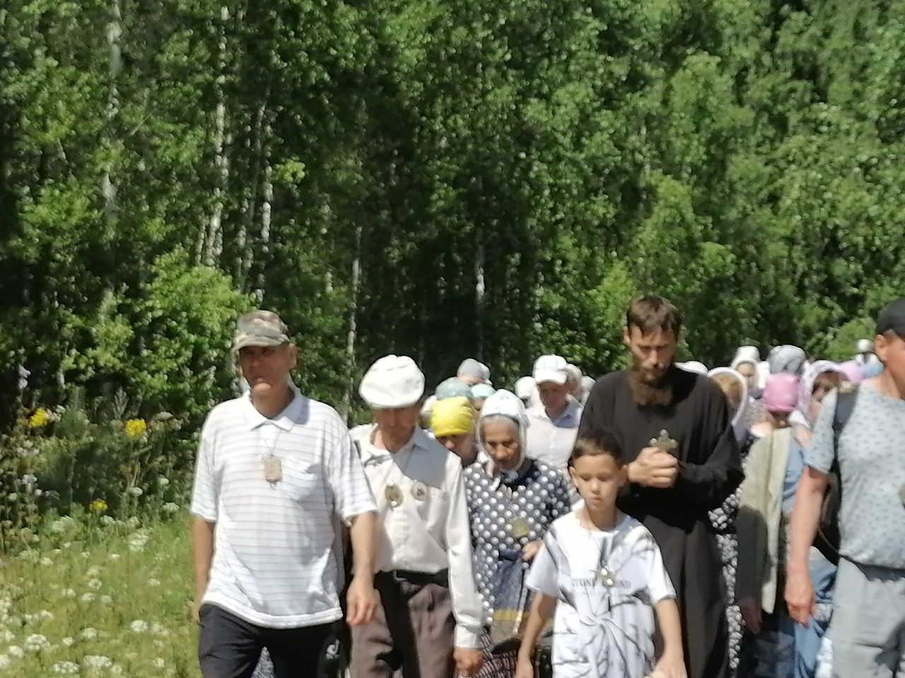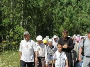 Крестоходцев радушно встречали жители деревни. На источнике преподобного Сергия Радонежского был совершен водосвятный молебен.