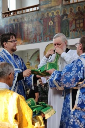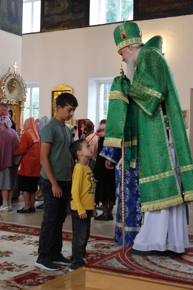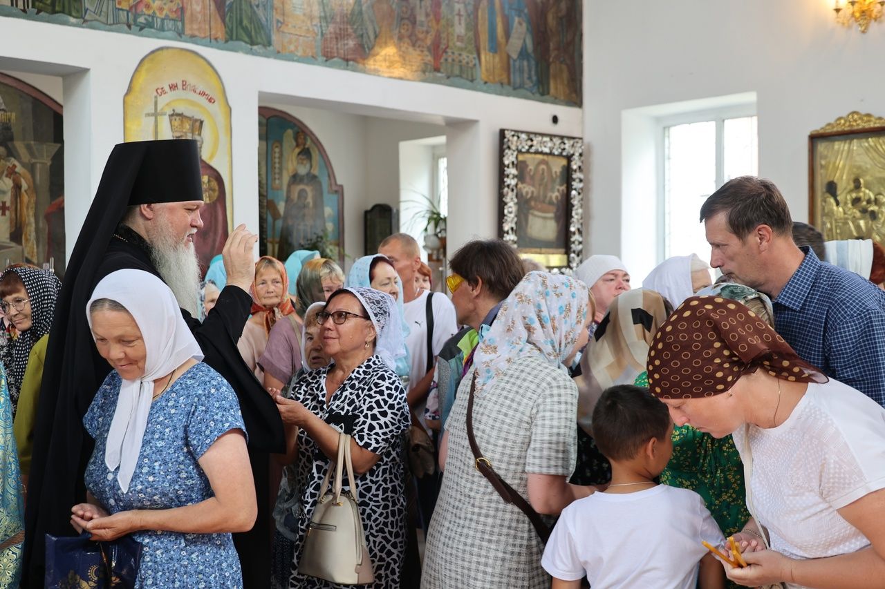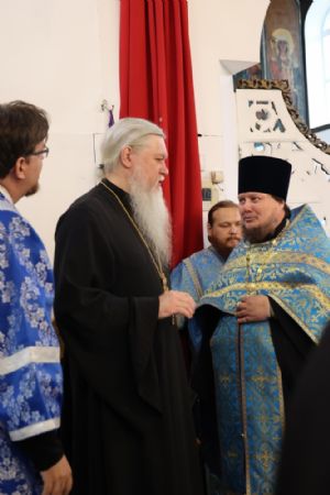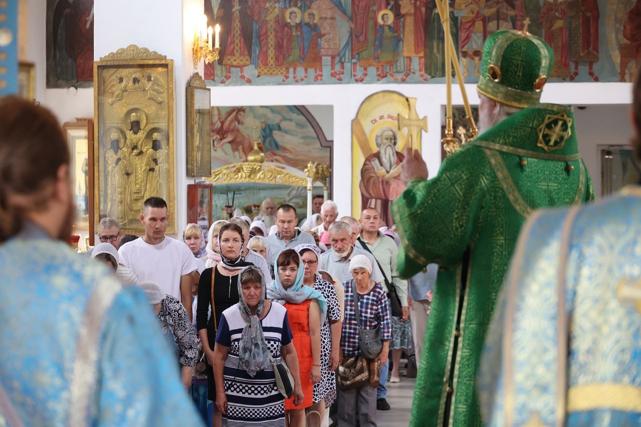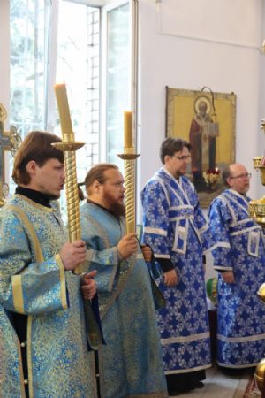 Архипастырю сослужили клирики собора. За Литургией пели два хора – архиерейский (регент Любовь Михеева) и народный под управлением Евгения Чигарова.