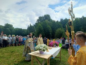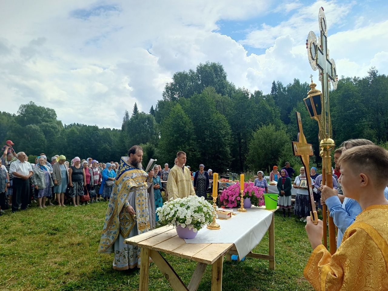 По прибытии к источнику отец Владимир совершил молебен, окропил собравшихся святой водой. Завершился праздник совместной трапезой на свежем воздухе.