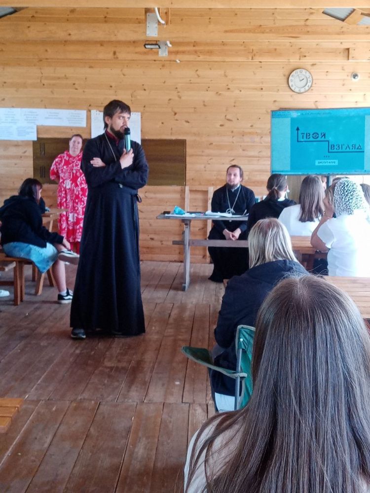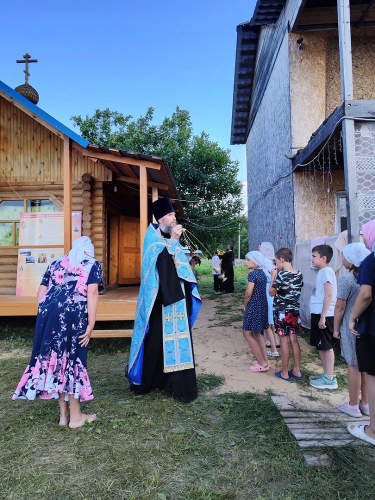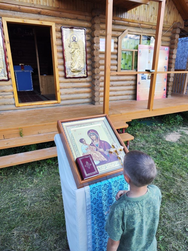 Вечером – канун празднования иконе Божией Матери «Троеручица». Отец Андрей Романов совершил всенощное бдение в расположенной в лагере часовне, освященной в честь иконы Пресвятой Богородицы «Воспитание».
