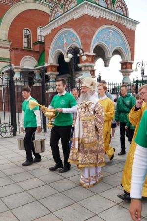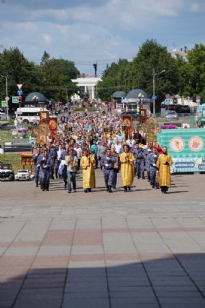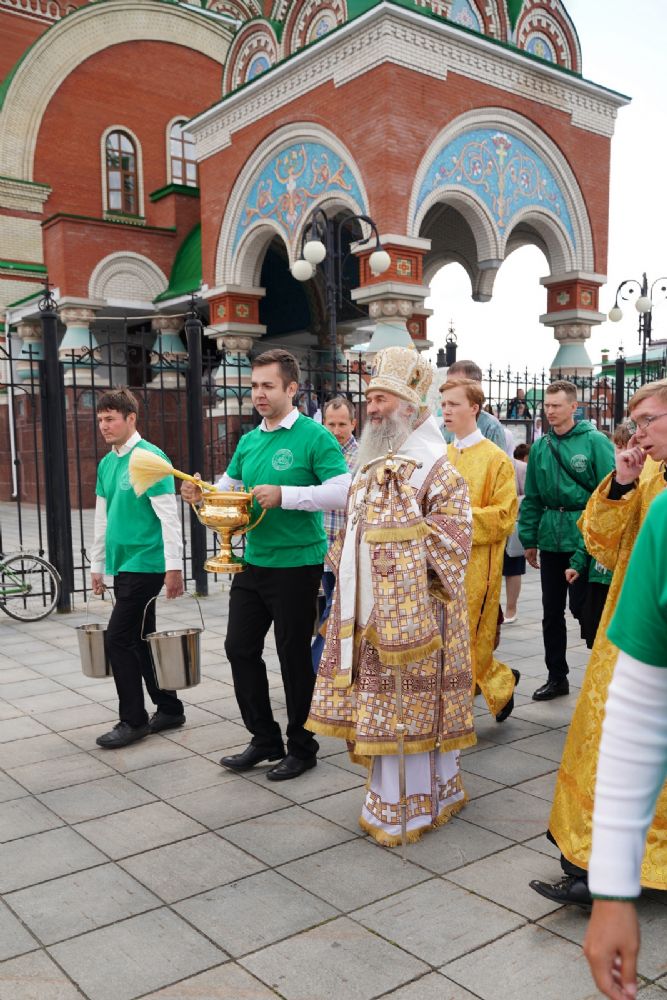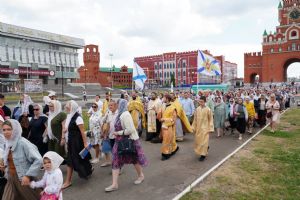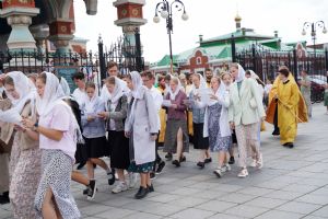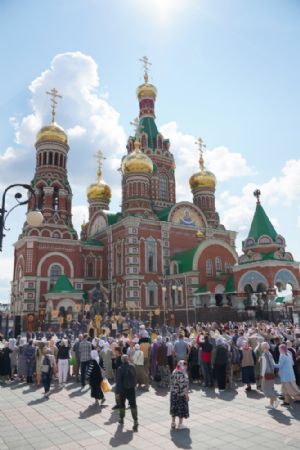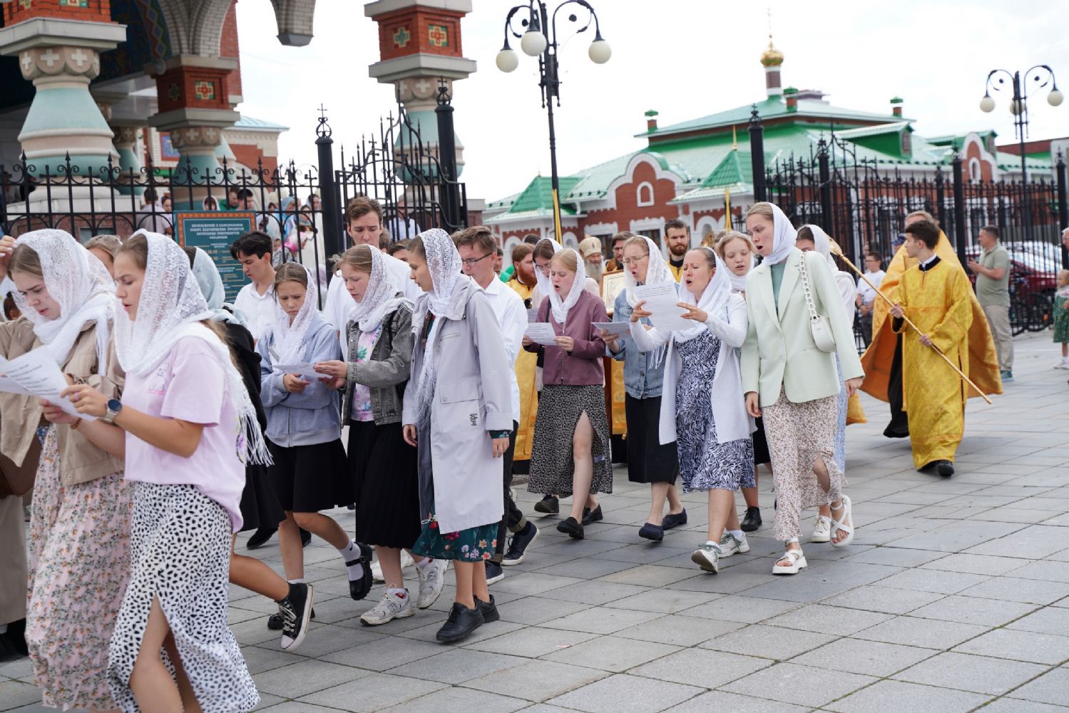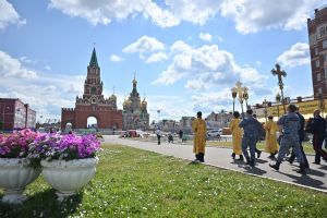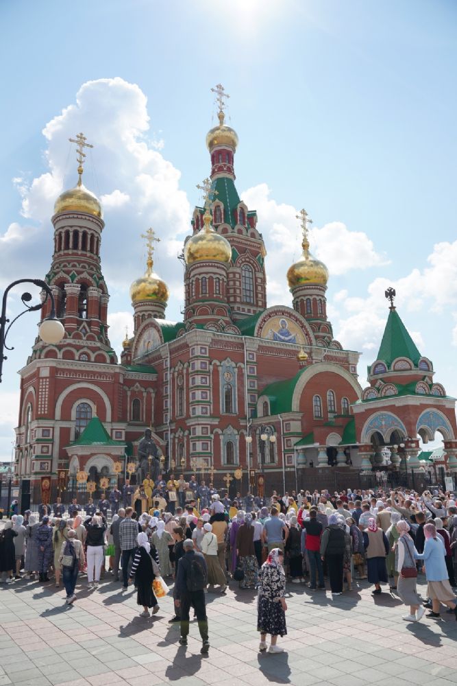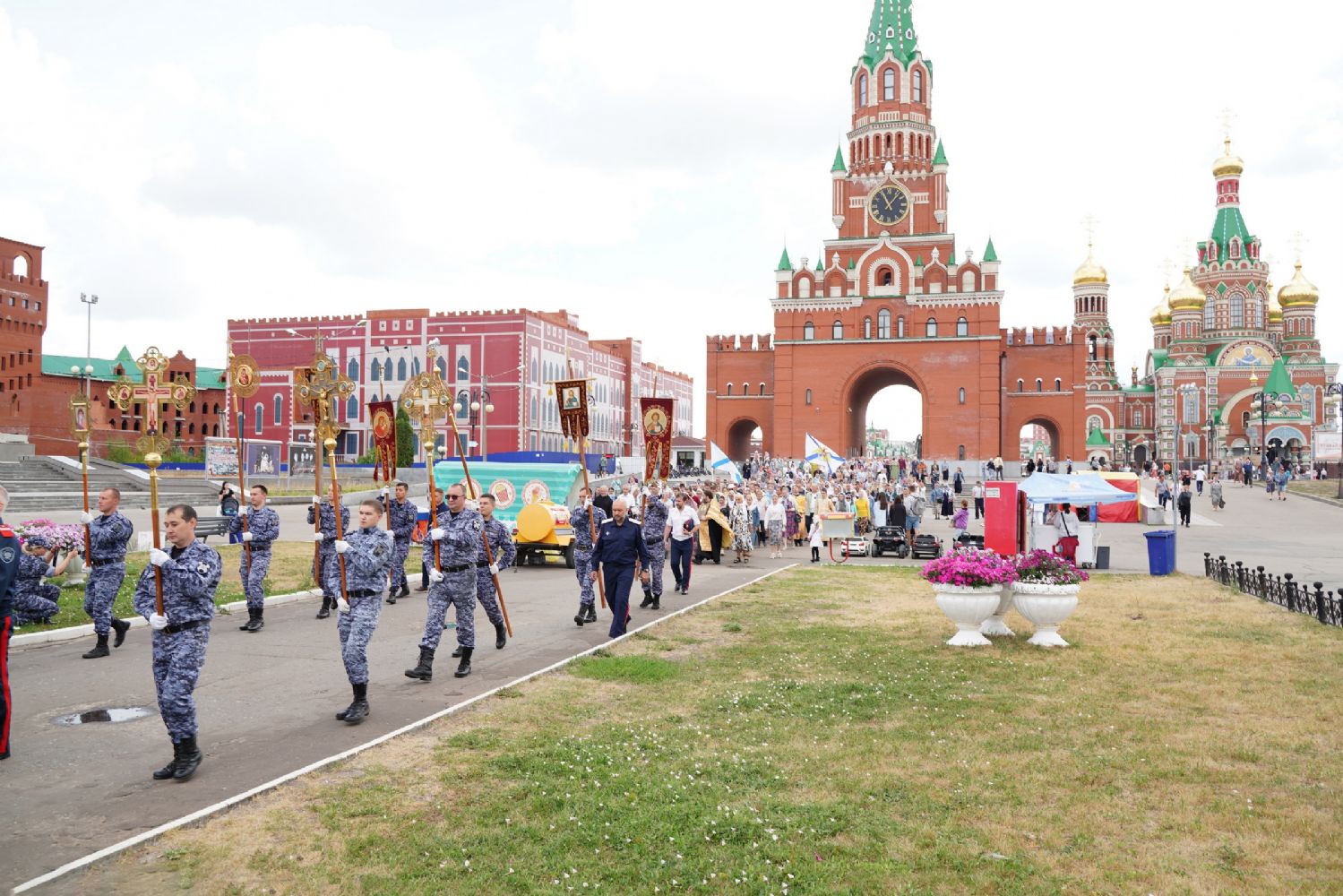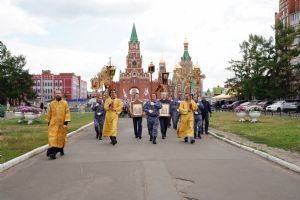 В этот день в Йошкар-Оле после Божественной литургии верующие из пяти городских храмов – Благовещенского кафедрального собора, Вознесенского и Воскресенского соборов, Троицкого и Успенского храмов – крестным ходом с молитвами прошли по улицам города на площадь Девы Марии.