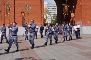 В праздничных богослужениях приняли участие сотрудники и военнослужащие Управления Росгвардии по Республике Марий Эл – равноапостольный князь Владимир является небесным покровителем войск Росгвардии. Во время молитвенного шествия из всех храмов Росгвардейцы несли кресты, иконы и хоругви.