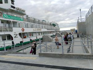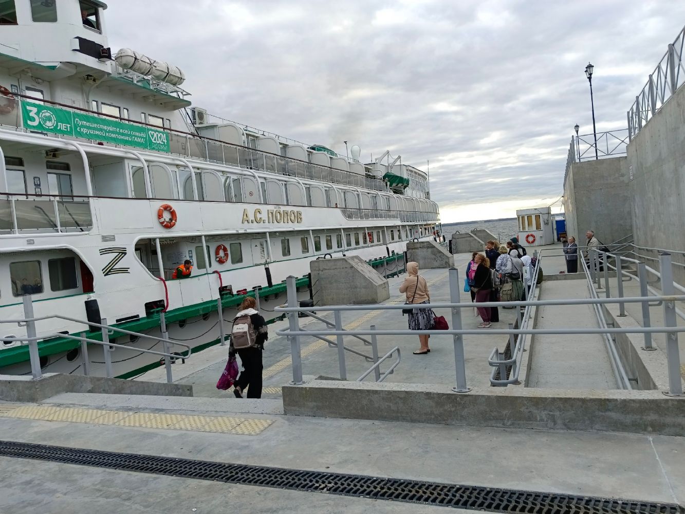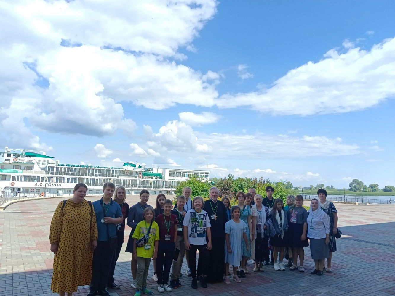 После молебна о путешествующих паломники переправились на пароме на другой берег Волги в село Сумки, где получили благословение на поездку от духовника Йошкар-Олинской епархии архимандрита Иоанна Барсукова. Затем добрались до города Козьмодемьянска, чтобы в Православном центре Троицкого храма дождаться теплохода «А.С. Попов», который должен был прибыть в 5 часов утра.