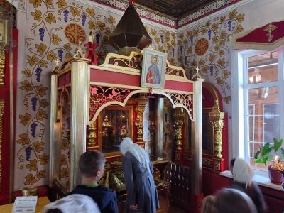 В Тихвинском храме мы приложились к иконам и частице мощей святого Авраамия Болгарского, поставили свечи и подали записки о здравии и упокоении близких и родных.