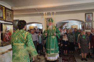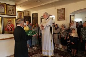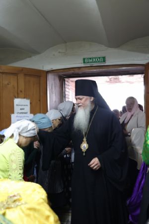 После Литургии было совершено славление перед иконой преподобного Серафима Саровского, затем владыка Феофан обратился к верующим с проповедью, напомнив житие и молитвенные подвиги преподобного Серафима Саровского.