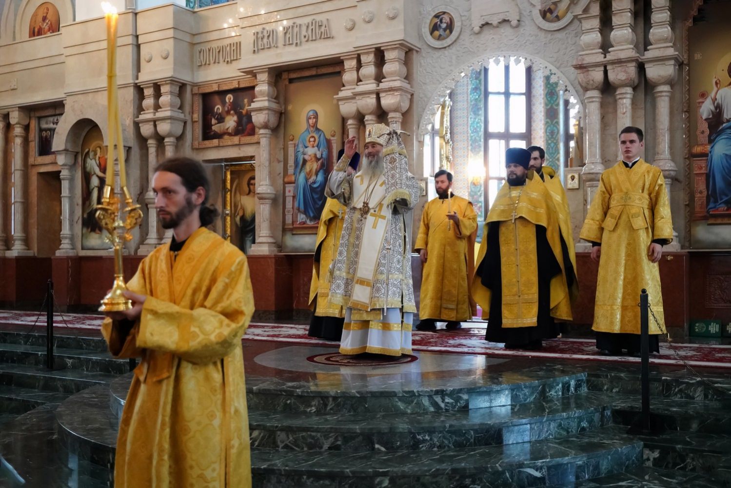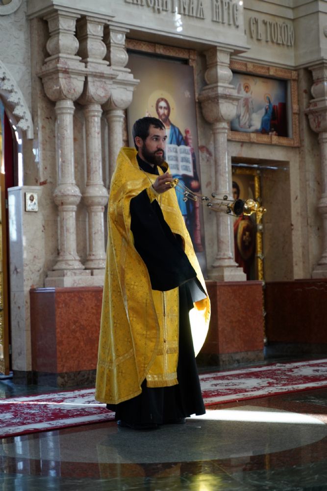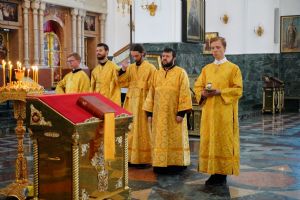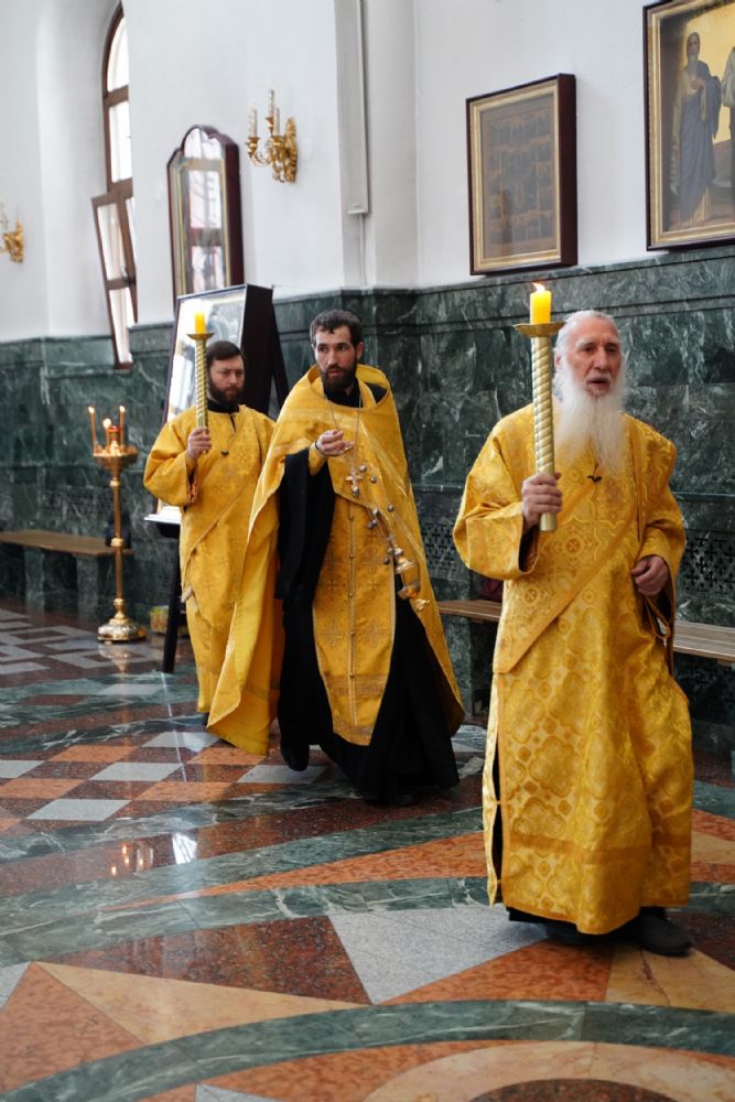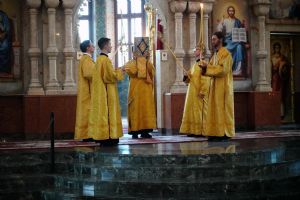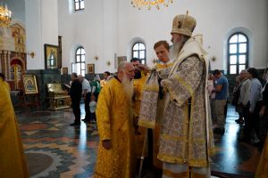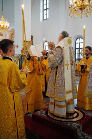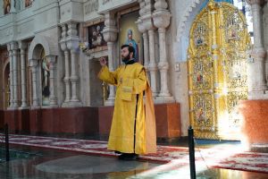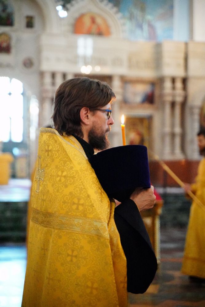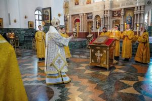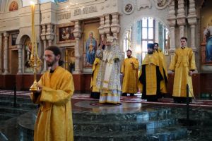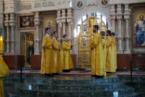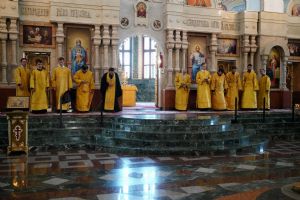 Архипастырю сослужили клирики собора иерей Никифор Захаров, иерей Евгений Самойлов, иерей Иоанн Милютин и диакон Артемий Бобоч, а также протодиакон Михаил Козловский. Песнопения исполнял детско-юношеский хор «Благовест» под руководством регента Надежды Поздеевой.