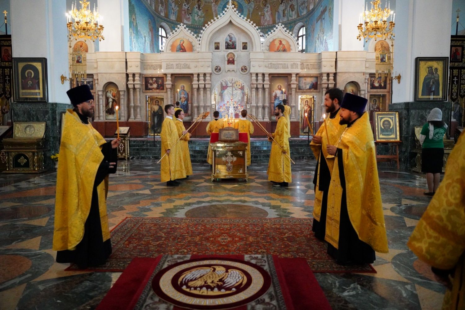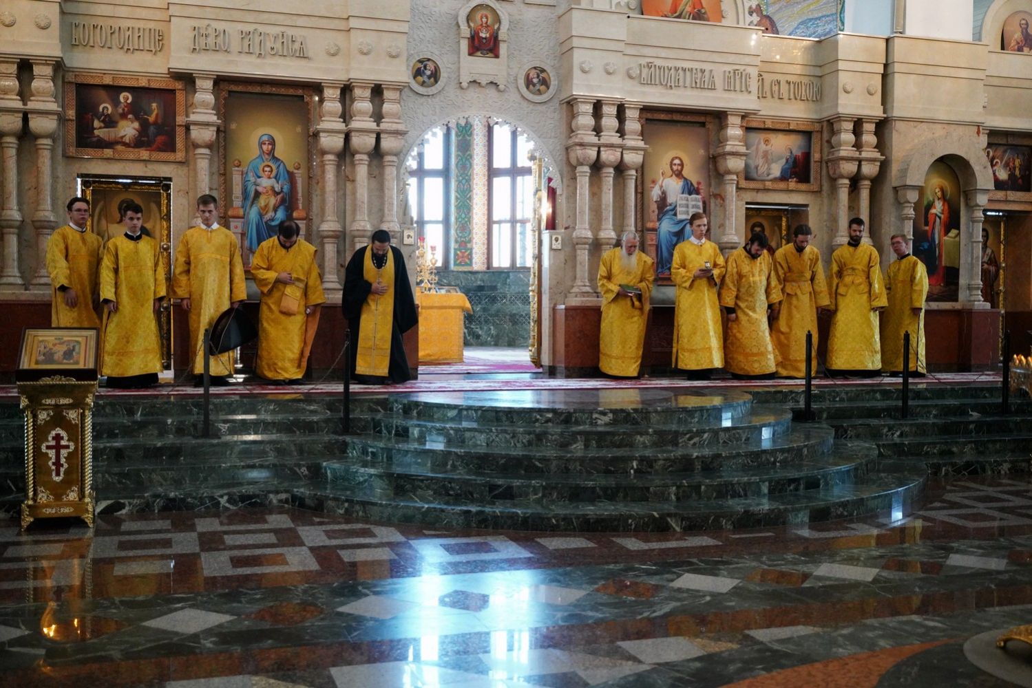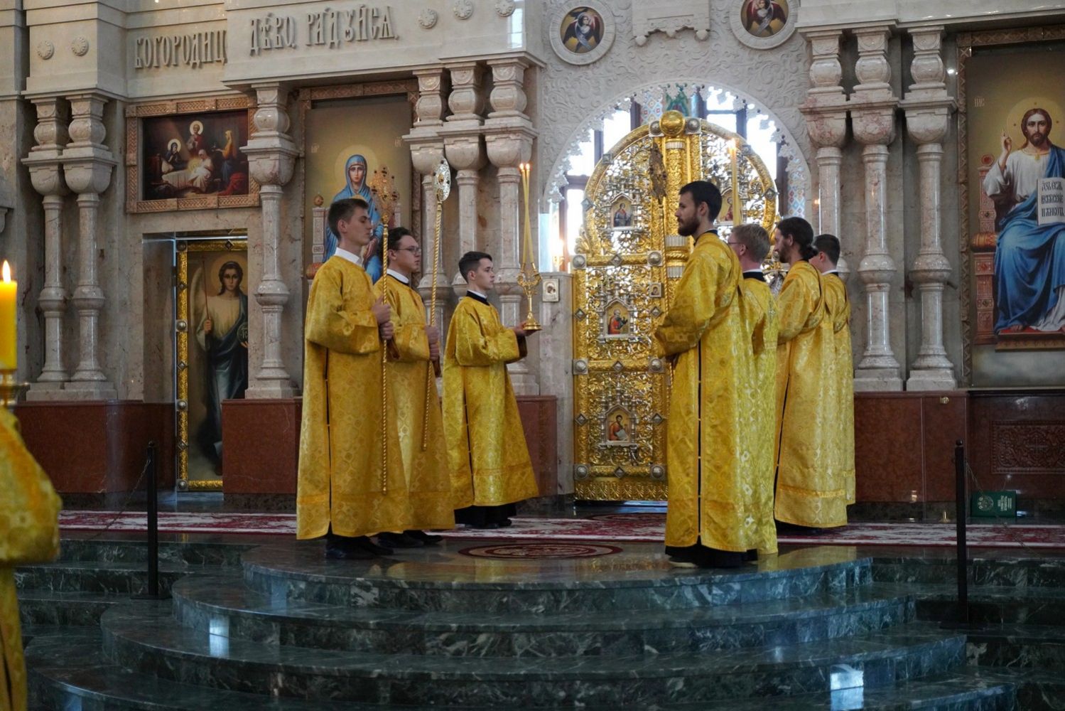Архипастырю сослужили клирики собора иерей Никифор Захаров, иерей Евгений Самойлов, иерей Иоанн Милютин и диакон Артемий Бобоч, а также протодиакон Михаил Козловский. Песнопения исполнял детско-юношеский хор «Благовест» под руководством регента Надежды Поздеевой.