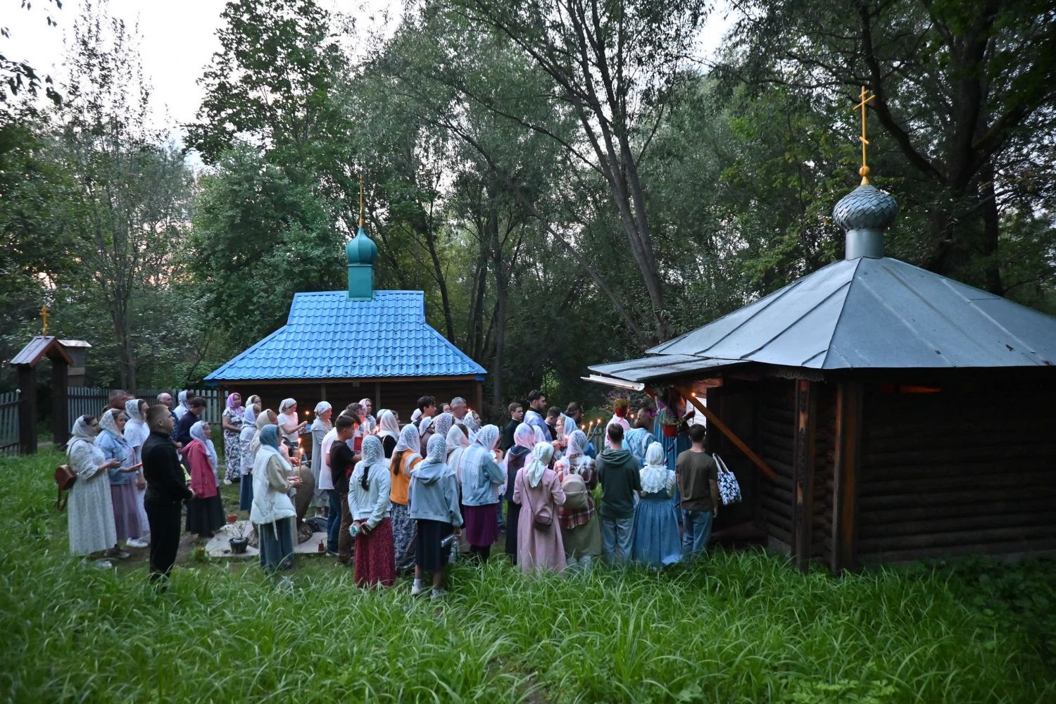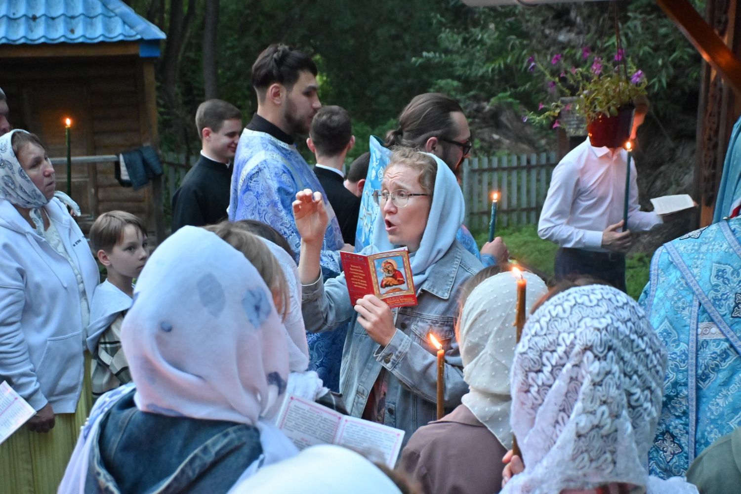 После всенощного бдения верующие и священство прошли на источник, освященный в честь Почаевской иконы Богородицы. Здесь митрополит Иоанн возглавил молебен с акафистом.