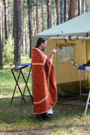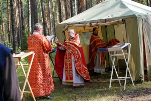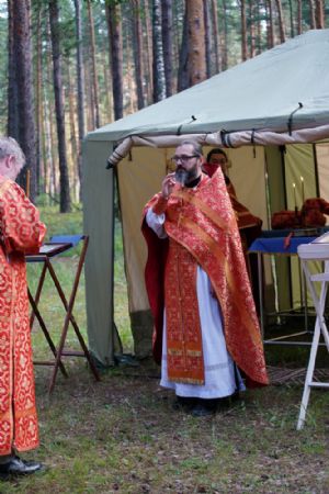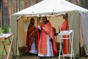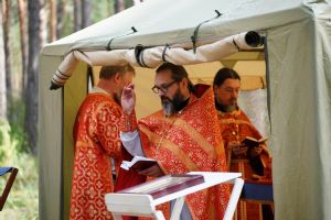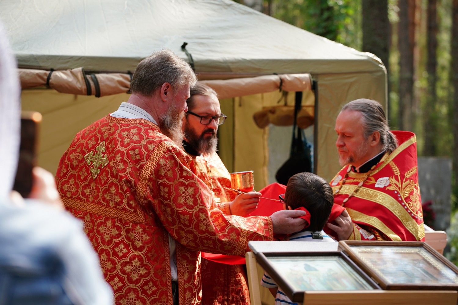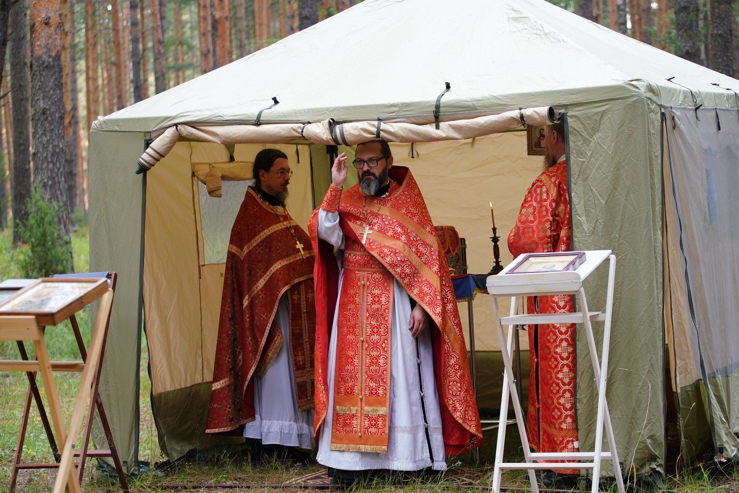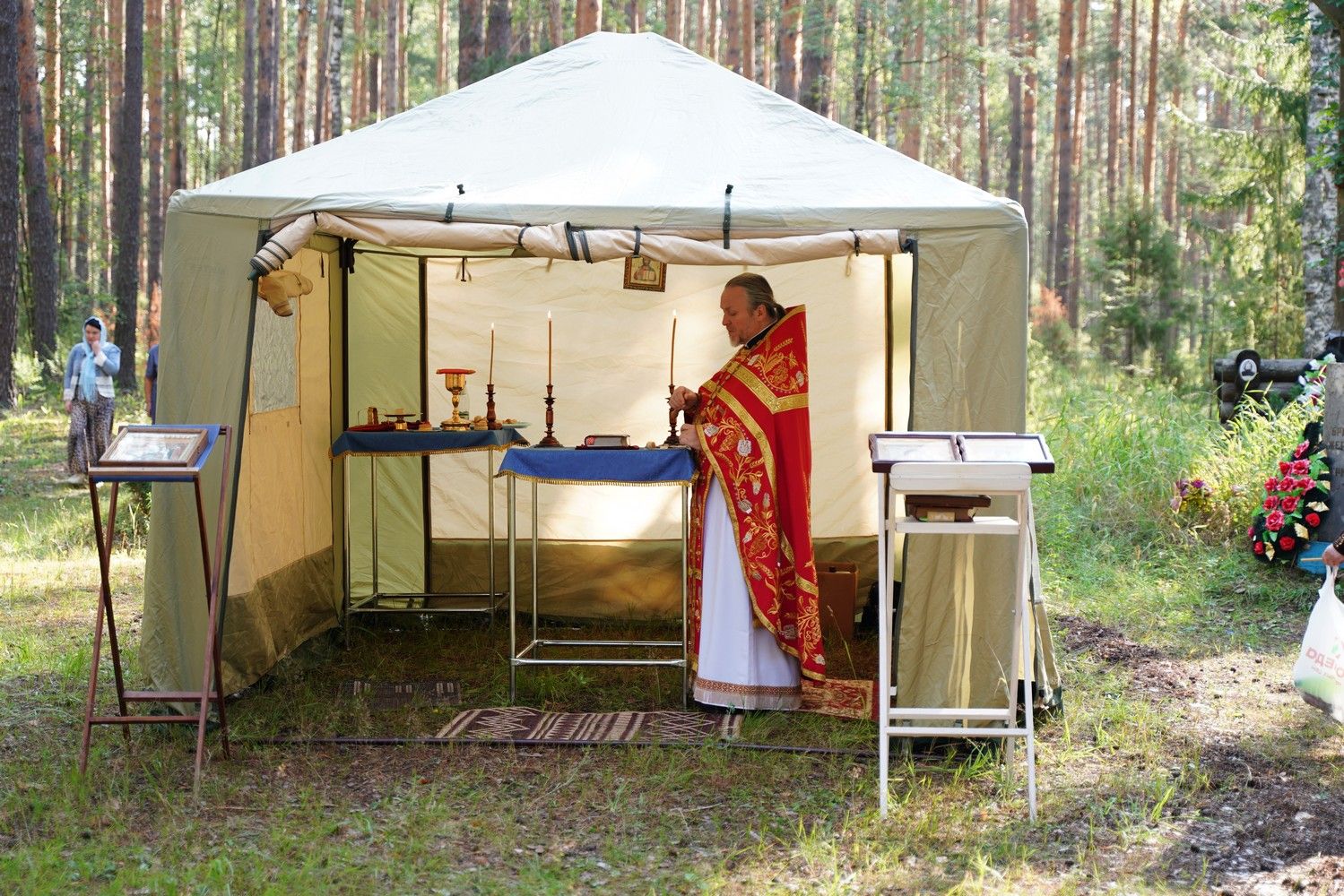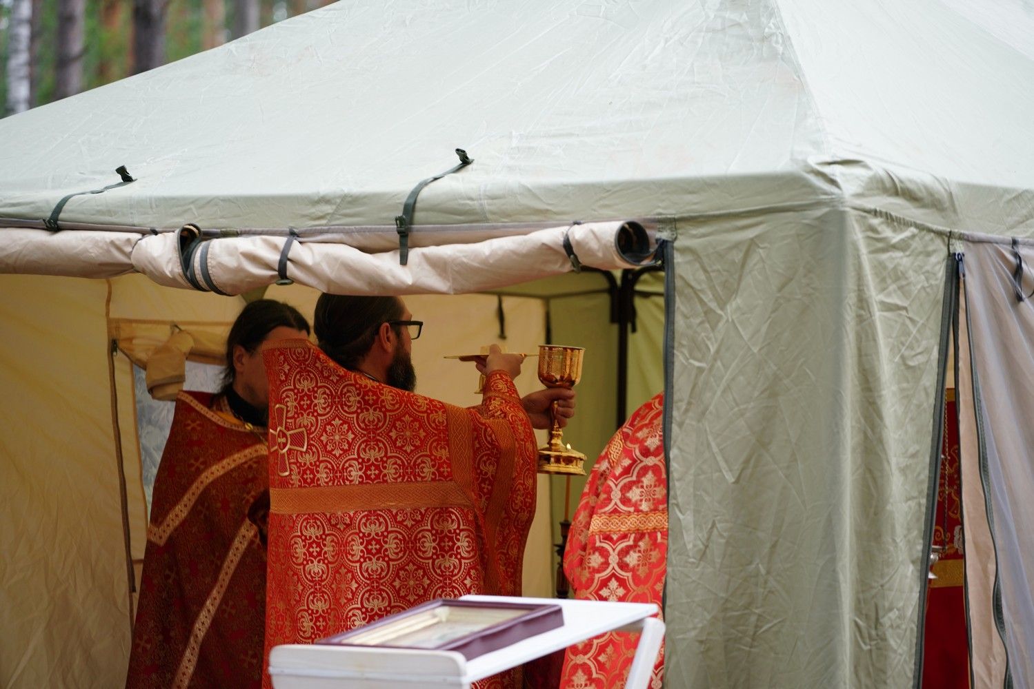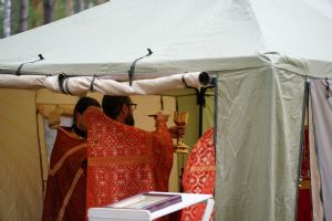 6 августа в палаточном храме на Мендурском мемориальном кладбище была совершена первая Божественная литургия.