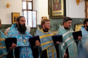 Его Высокопреосвященству сослужили секретарь Йошкар-Олинского епархиального управления иерей Димитрий Дьяков и духовенство городских храмов. Песнопения исполнял хор «Благовест» под управлением Татьяны Черновой.