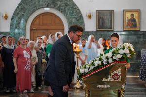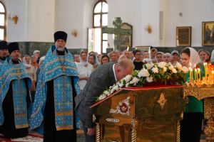 За богослужением молились заместитель Председателя Правительства Республики Марий Эл, министр культуры, печати и по делам национальностей Константин Иванов, председатель Госсобрания РМЭ Анатолий Смирнов, глава городского округа Виктор Кузнецов, врио мэра Йошкар-Олы Антон Трудинов, другие официальные лица и многочисленные прихожане храмов города.