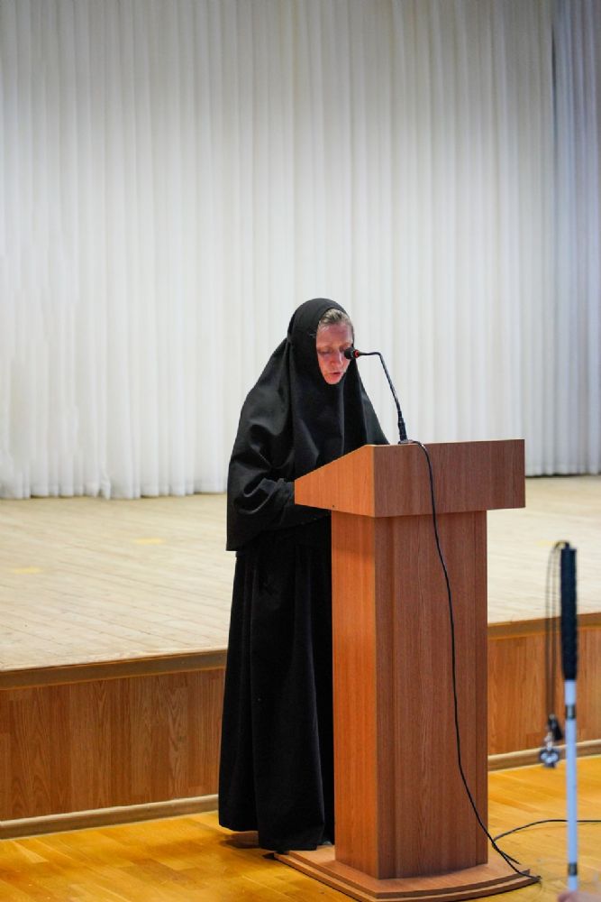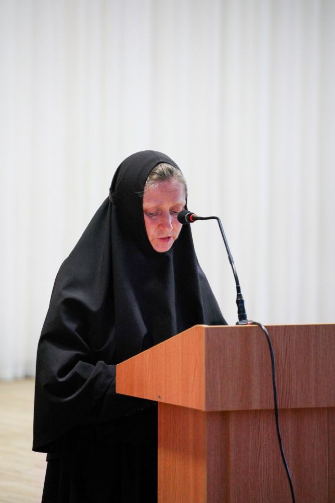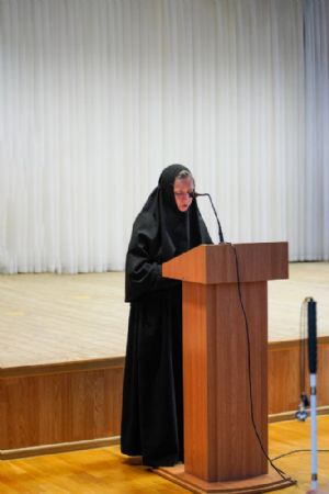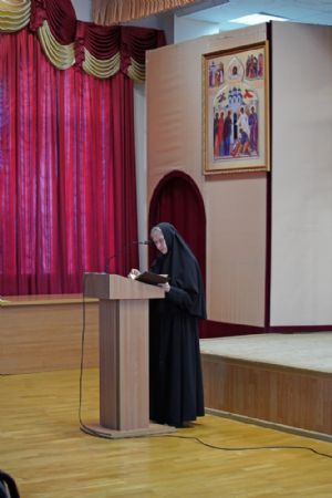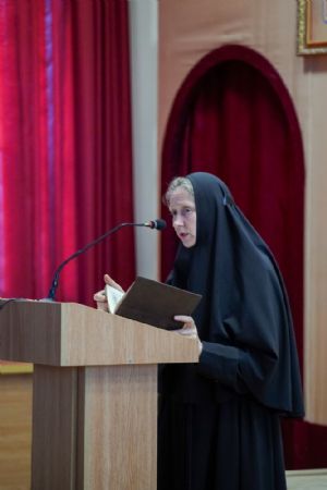 Насельница возрождающейся в наши дни Богородице-Сергиевой обители монахиня Рафаила (Зулина) подробно рассказала собравшимся о жизненном пути матушки Маргариты и ее вкладе в духовное наследие Царевококшайска, а также о трудах сестер Богородице-Сергиевской обители.