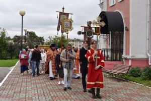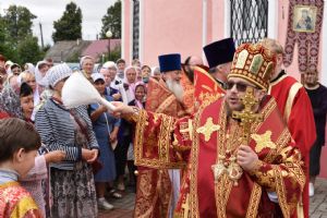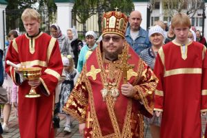 После Литургии прошел крестный ход вокруг храма со чтением Евангелия и кроплением святой водой. После его окончания епископ Паисий вознес молитву священномученику Сергию перед иконой с частицей его мощей. Затем владыка поздравил духовенство и всех участников богослужения с праздником.