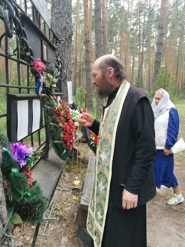 В этот же день после обеда священство и прихожане совершили поездку на Мендурское кладбище – место захоронения расстрелянного священномученика Сергия Стрельникова. Там был отслужен молебен священномученику и заупокойная лития о жертвах репрессий.