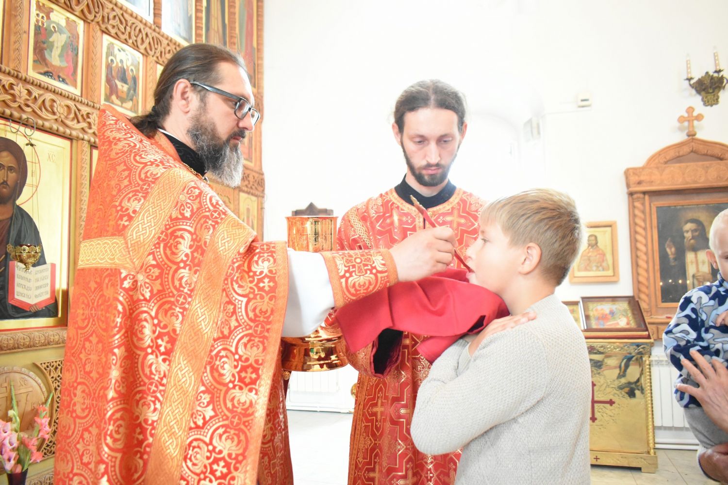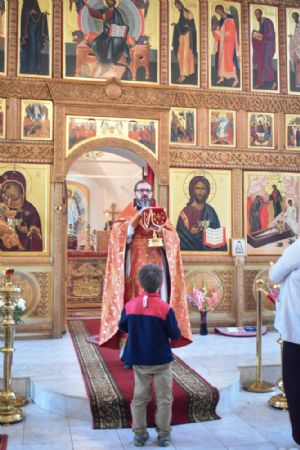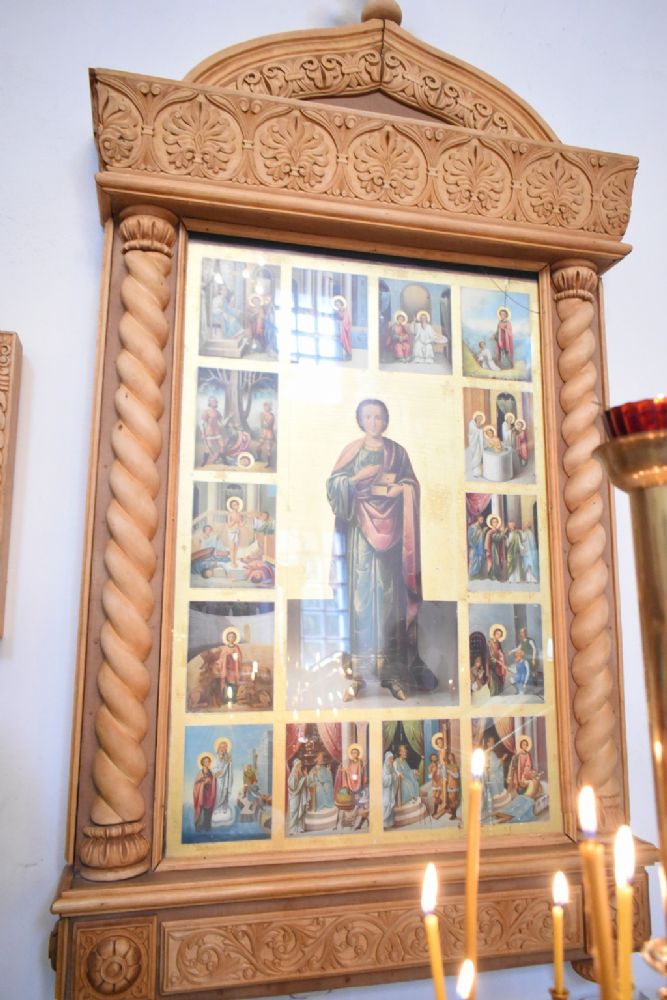 После Литургии была вознесена молитва и пропет тропарь великомученику Пантелеимону перед его чтимой иконой.