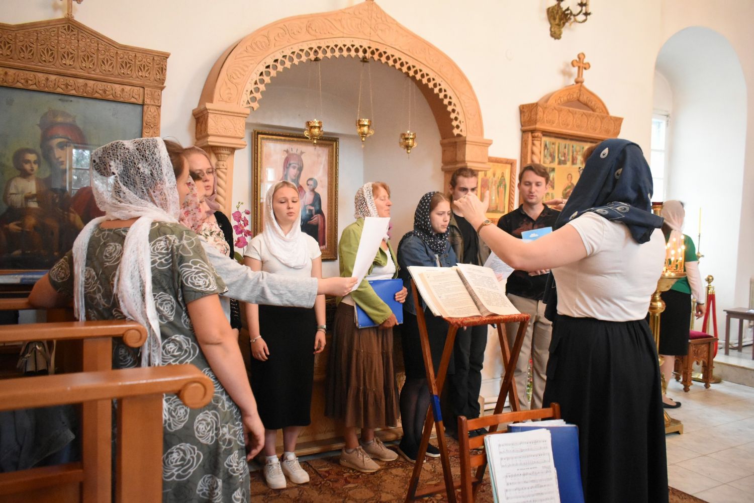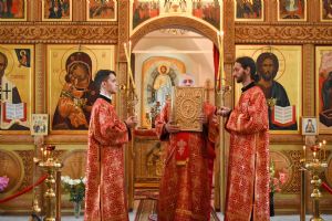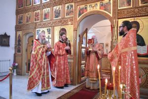 Владыке сослужили секретарь Йошкар-Олинского епархиального управления иерей Димитрий Дьяков, клирик монастыря иерей Михаил Лежнин и протодиакон Михаил Козловский. Песнопения исполнял хор Троицкрго храма г. Йошкар-Олы под управлением регента Анны Ярошевич.