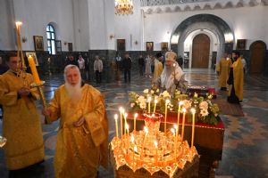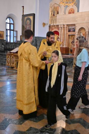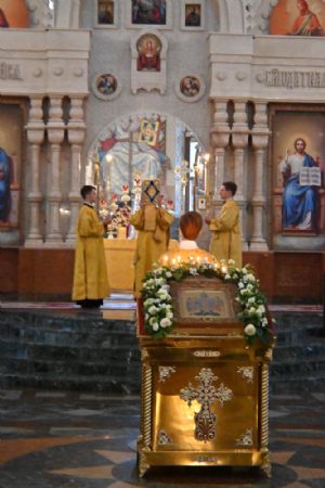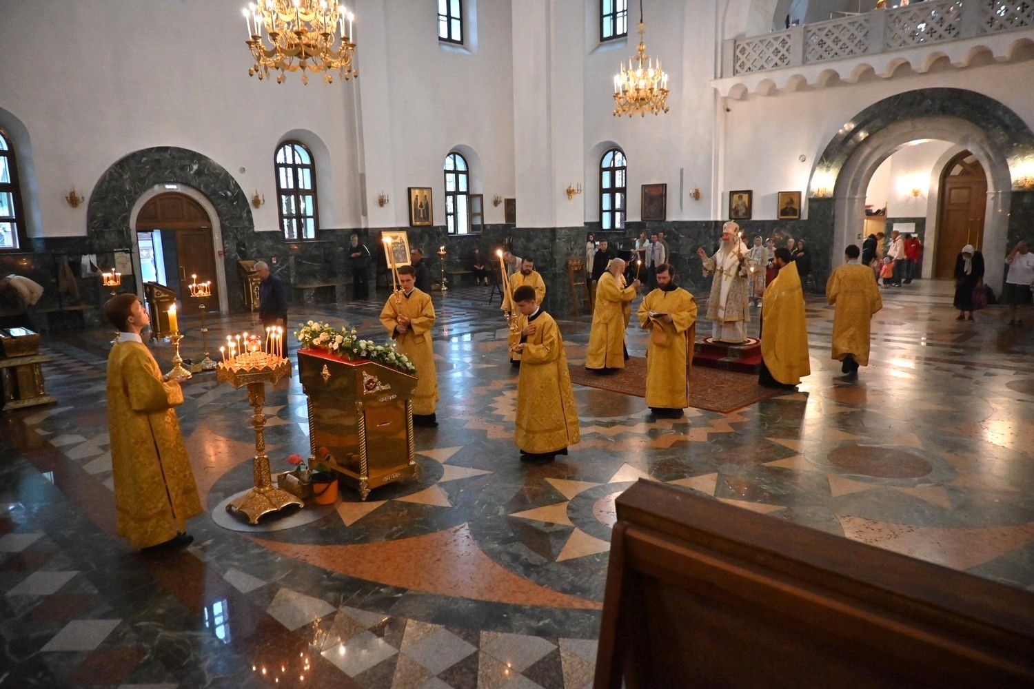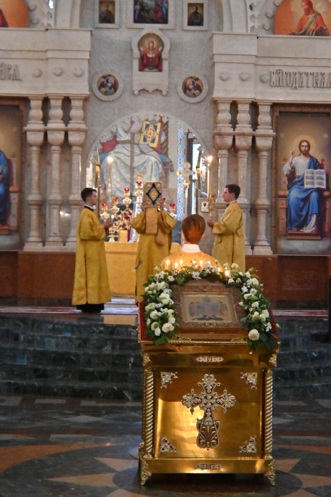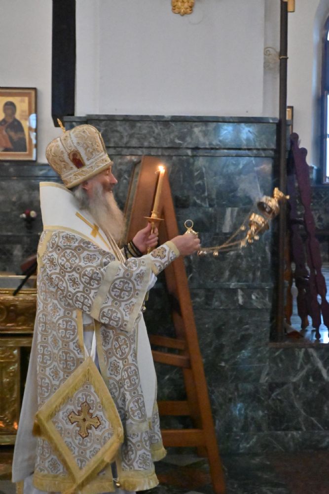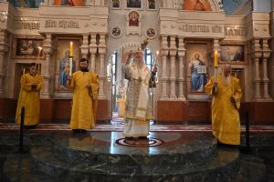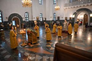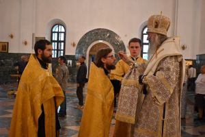 Архипастырю сослужили клирики собора иерей Евгений Самойлов, иерей Иоанн Милютин и диакон Артемий Бобоч, а также протодиакон Михаил Козловский. Песнопения исполнял детско-юношеский хор «Благовест» под управлением Надежды Поздеевой.
