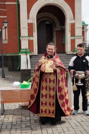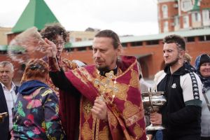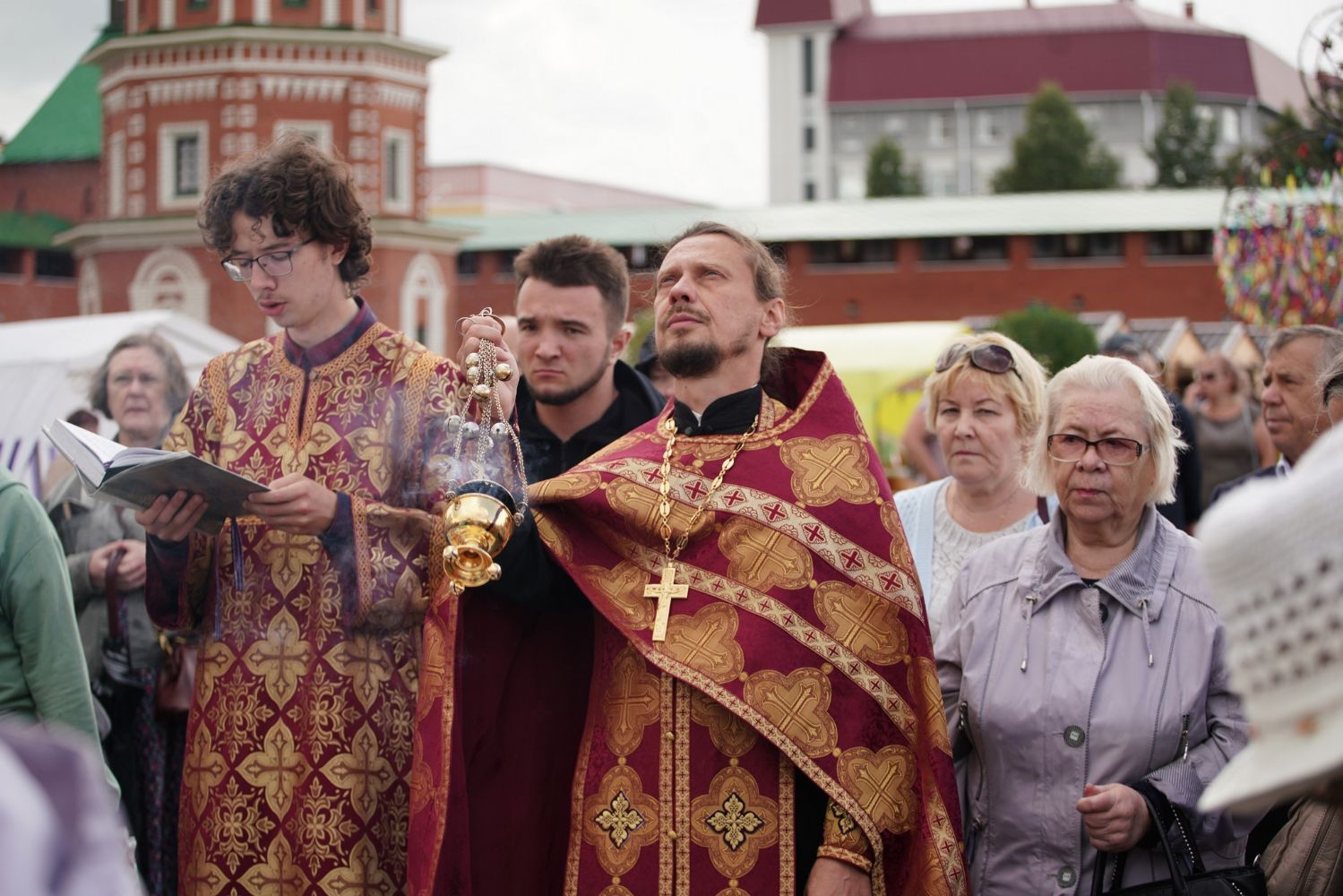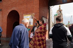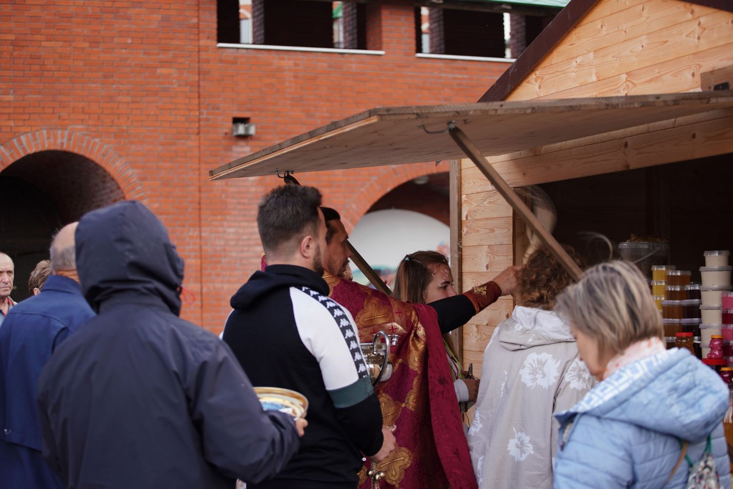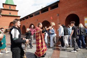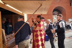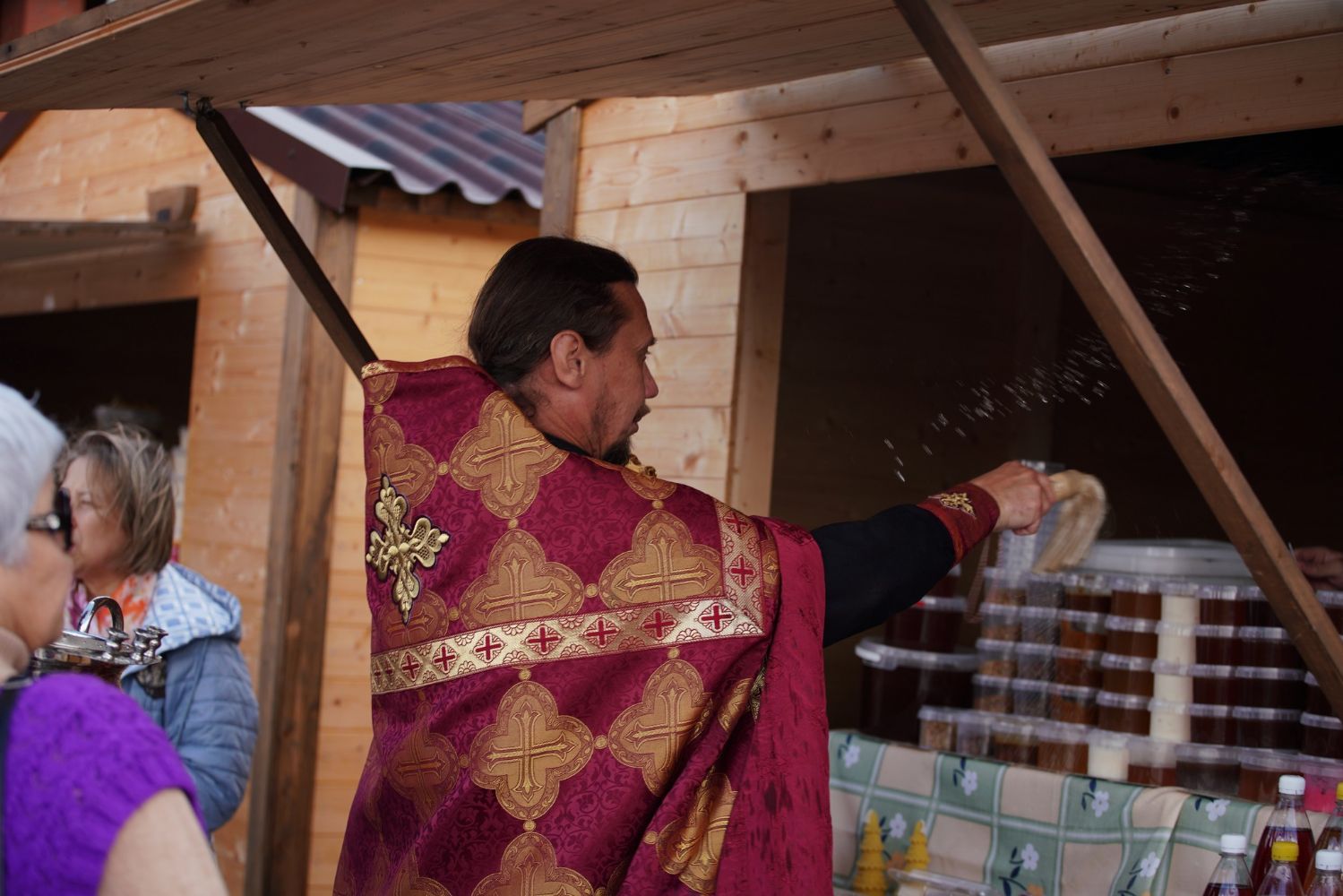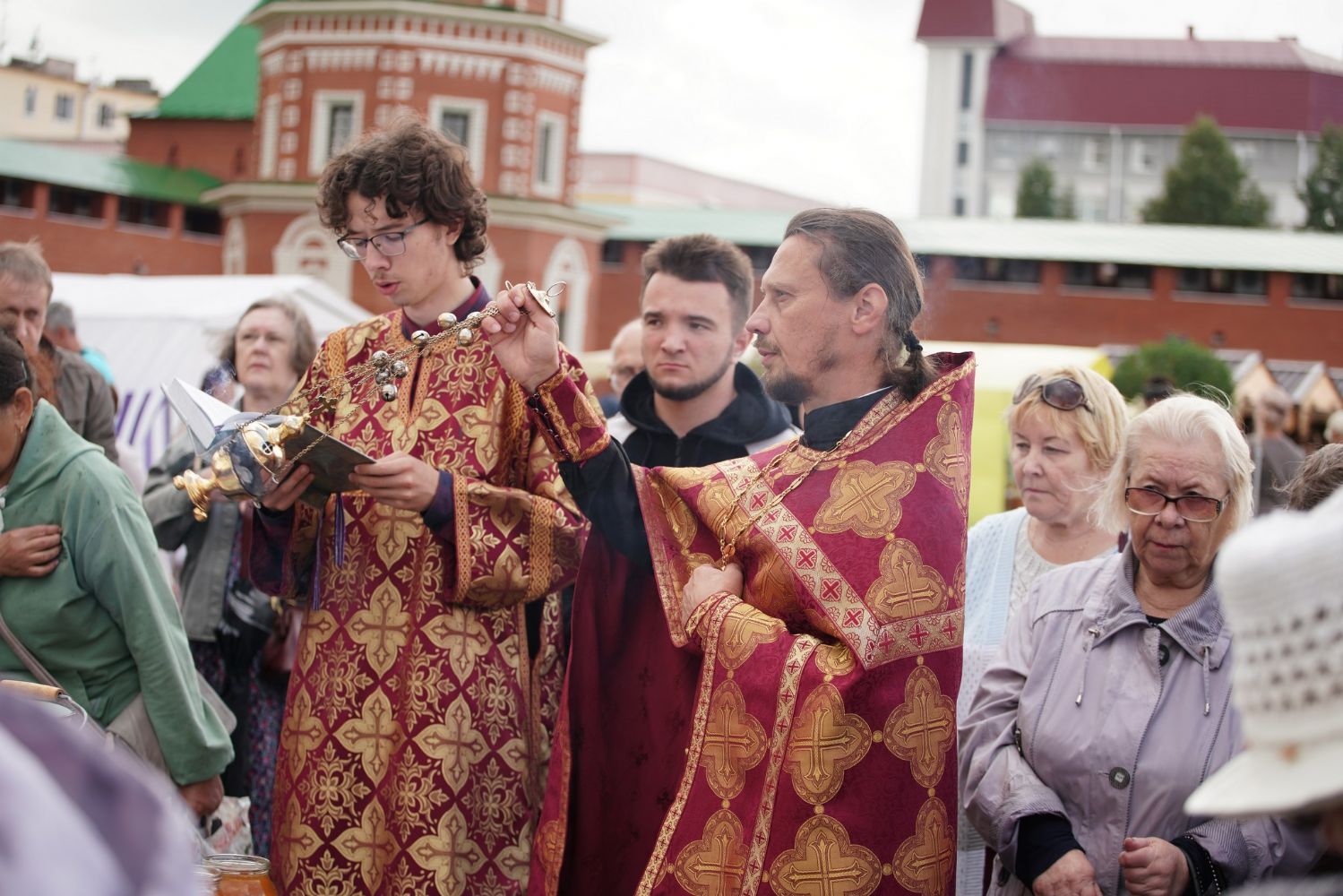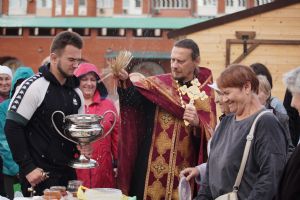На открытии ярмарки настоятель Воскресенского собора г. Йошкар-Олы иерей Андрей Кочаков совершил водосвятный молебен, после чего обошел все торговые места и окропил святой водой мед и собравшихся людей.