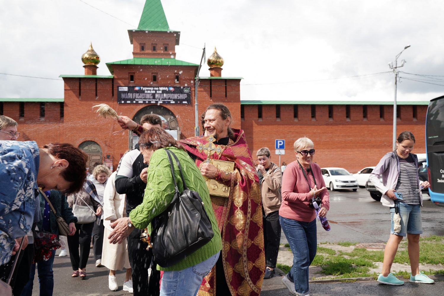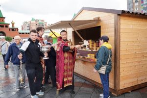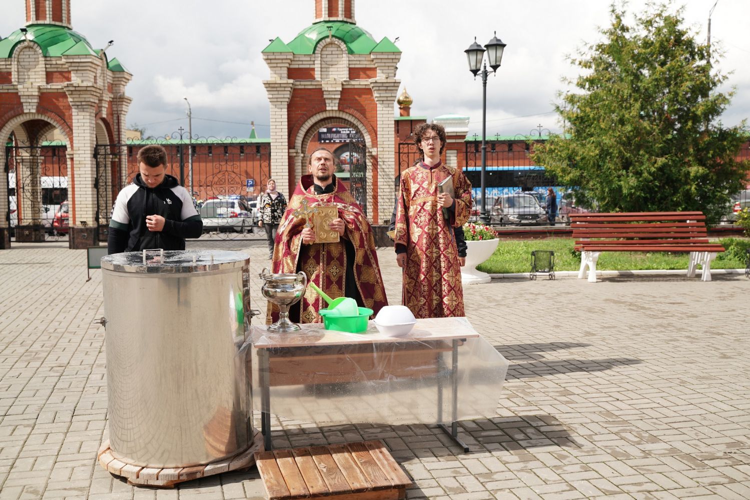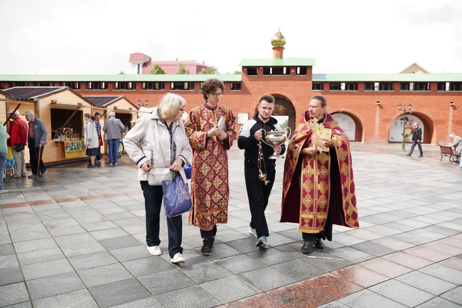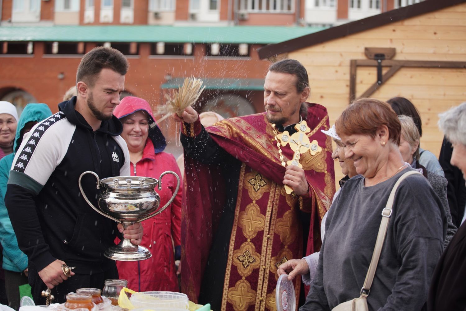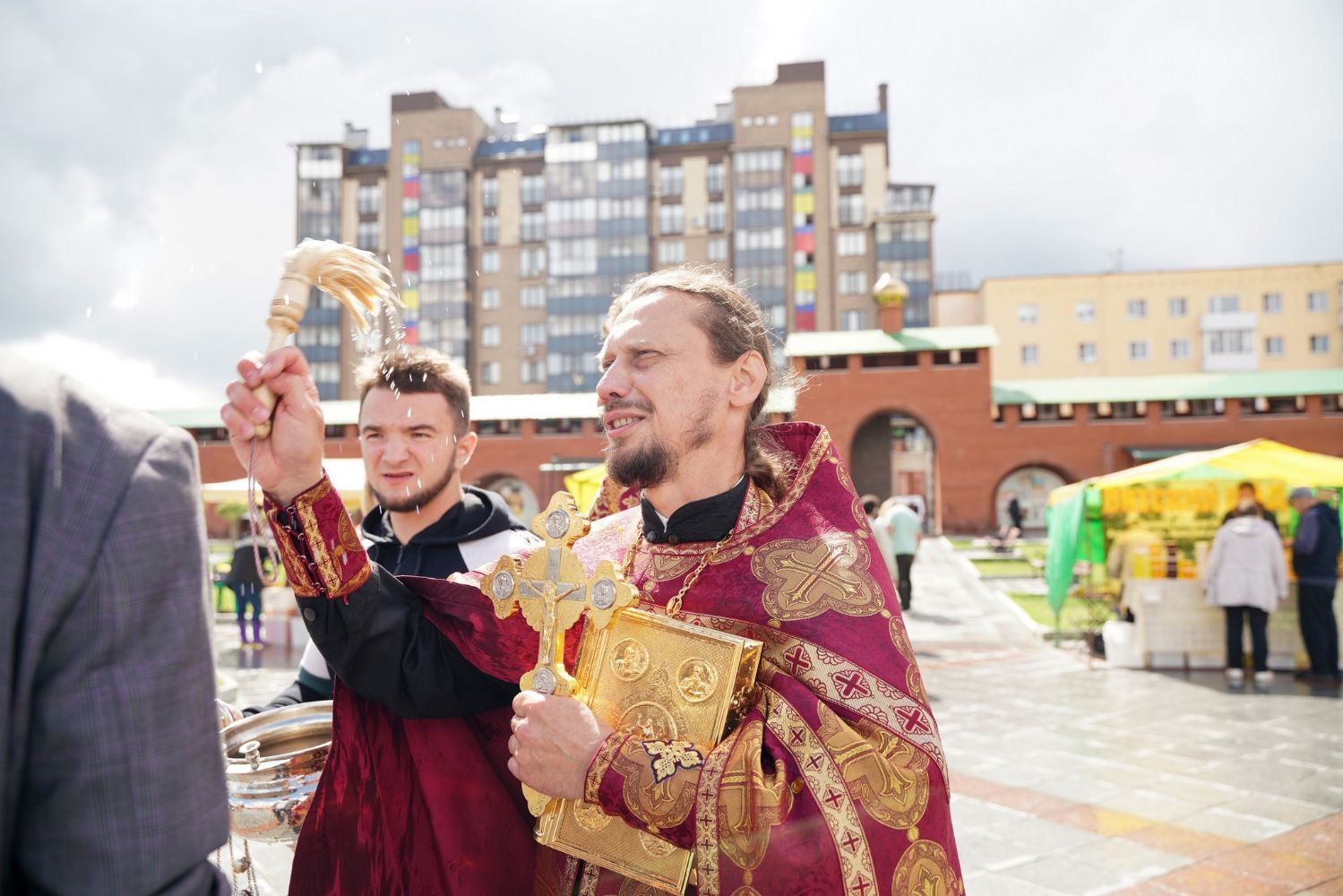На открытии ярмарки настоятель Воскресенского собора г. Йошкар-Олы иерей Андрей Кочаков совершил водосвятный молебен, после чего обошел все торговые места и окропил святой водой мед и собравшихся людей.