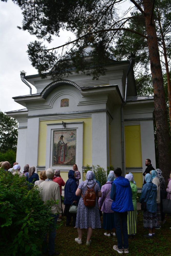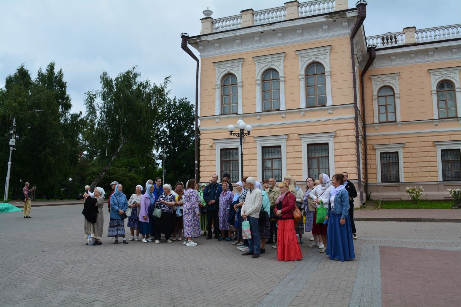 Началось паломничество с посещения Тихвинского Богородицкого Успенского монастыря, где верующие поклонились чудотворной иконе Божией Матери «Тихвинская», познакомились с историей обители и участвовали в суточном круге богослужений. Многие паломники причастились Святых Христовых Таин. Примечательно, что в этом году отмечается 20-летие возвращения из Америки в Россию чудотворного Тихвинского образа.