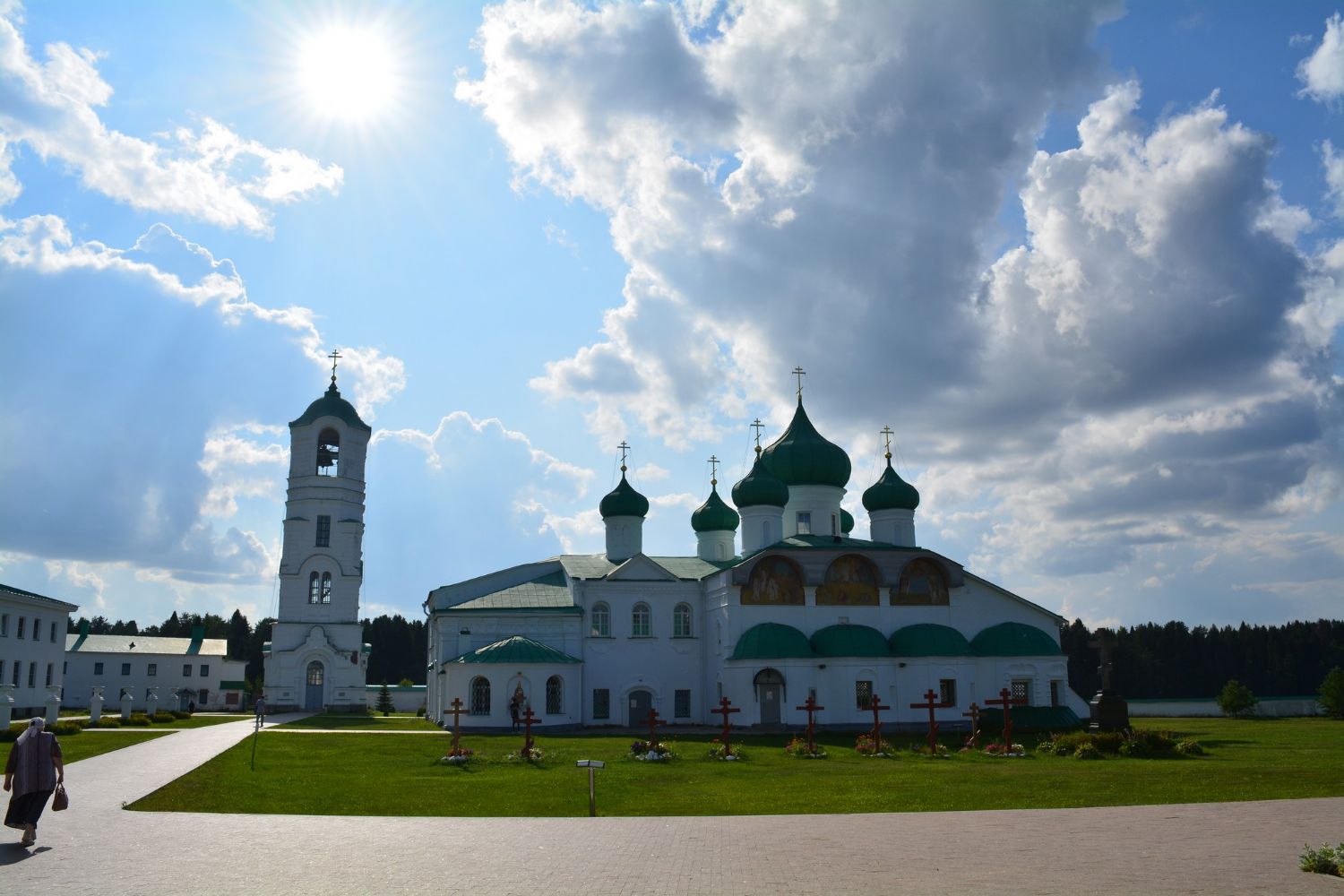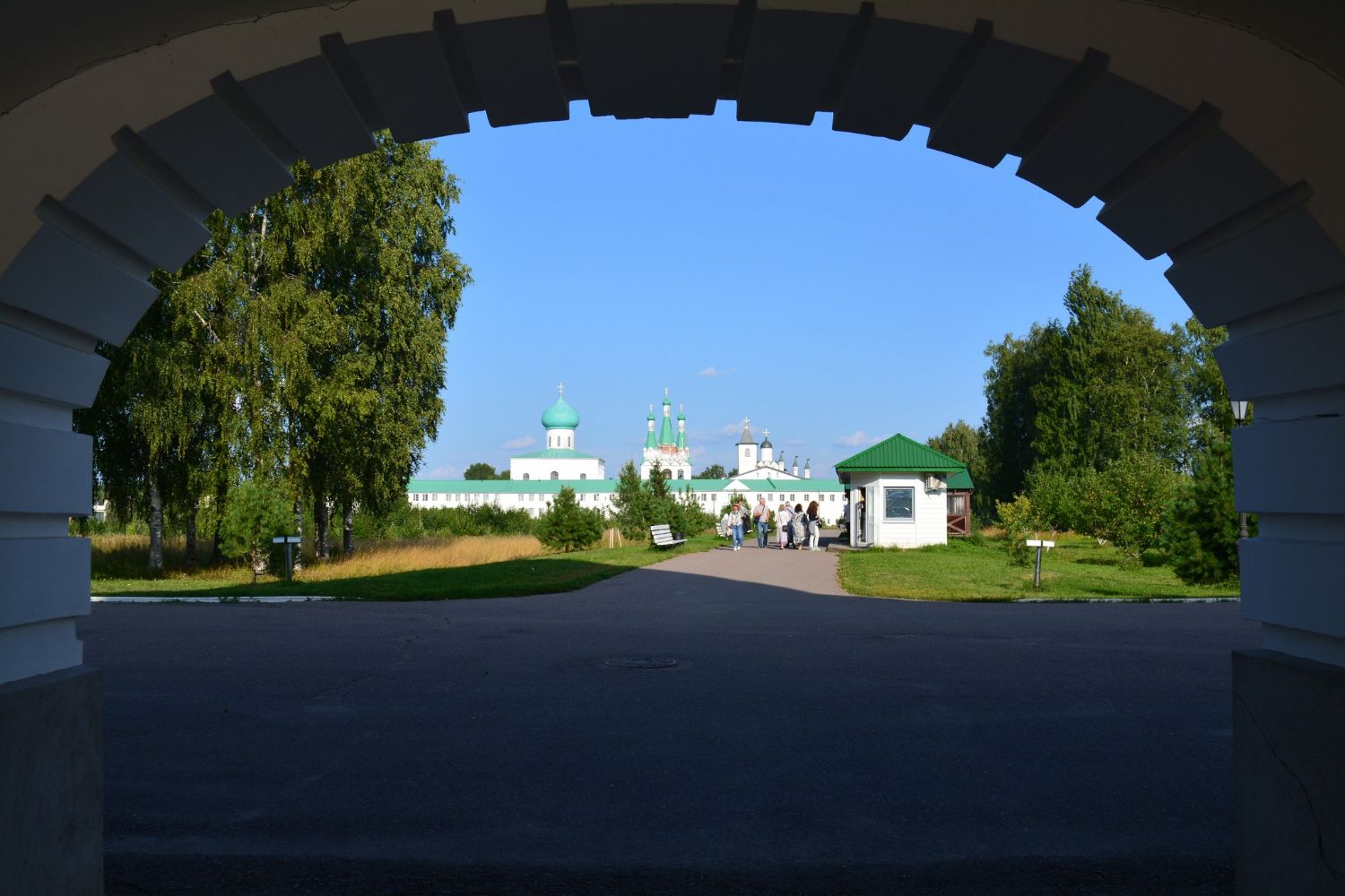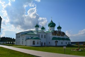 Из Тихвина путь паломников пролегал в Свято-Троицкий Александра Свирского мужской монастырь на севере Ленинградской области. Преподобный основатель обители именуется «Новым Авраамом» – он сподобился явления Святой Троицы. Сегодня на месте явления расположена часовня, где верующие могут помолиться и набрать святой земельки. Паломники, помолившись за вечерним уставным богослужением, приложились к открытым нетленным мощам преподобного Александра Свирского и отправились в дальнейший путь.