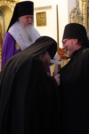 По окончании пострига епископ Феофан обратился к монаху Тихону с поздравлением и добрым пожеланием помощи Божией на пути монашеского служения Богу и людям.
