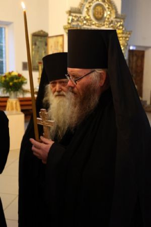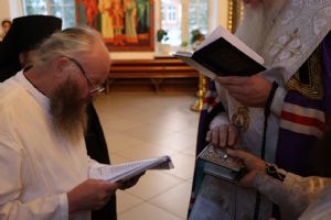 Его Преосвященству сослужили иеромонах Иоанн (Панин), иеродиакон Спиридон (Холмовский), иерей Иоанн Лапшинский, диакон Иоанн Захаров.