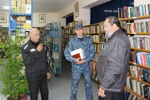Представители Общественной наблюдательной комиссии Марий Эл иерей Алексий Леонов и Евгений Чернышев в сопровождении старшего инспектора группы по соблюдению прав человека в УИС Андрея Кириллова посетили жилую зону и библиотеку учреждения, пообщавшись с осужденными.