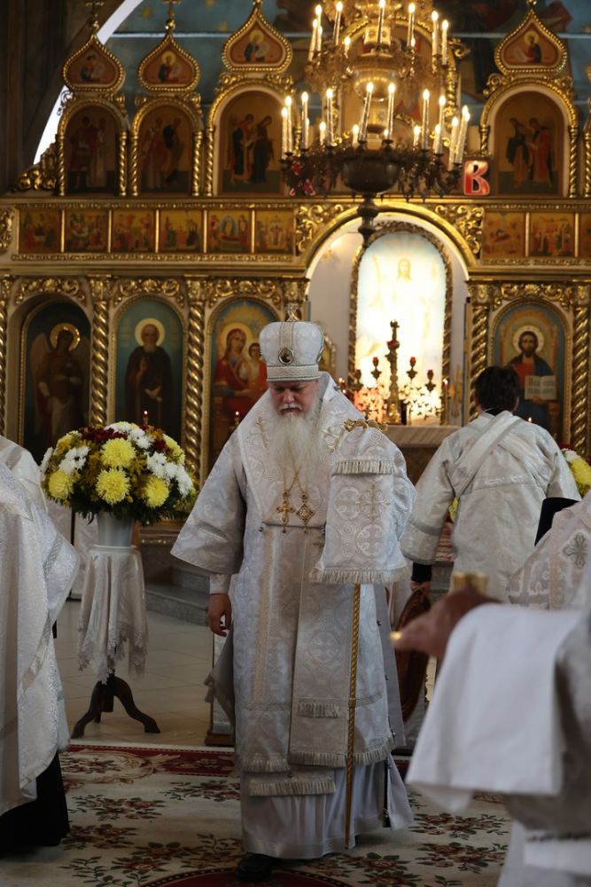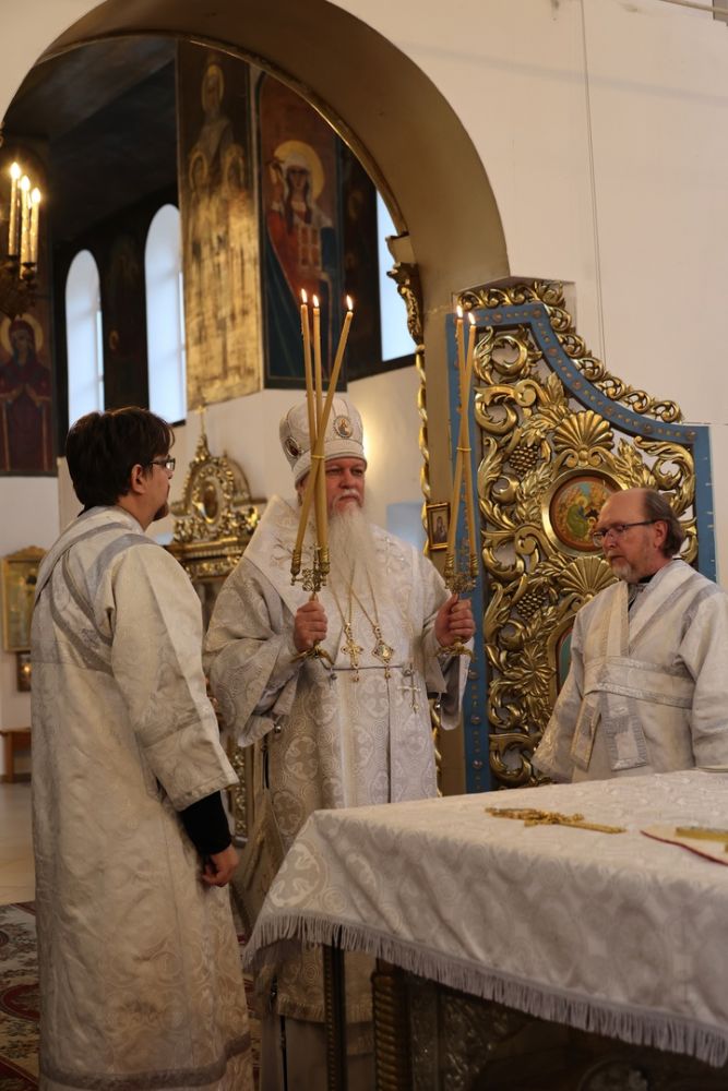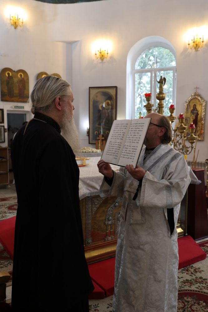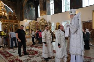 Архипастырю сослужили клирики собора иерей Иоанн Лапшинский, диакон Иоанн Захаров и иеродиакон Тихон (Белавин). Песнопения исполнял хор кафедрального собора под управлением Елены Васильевой.