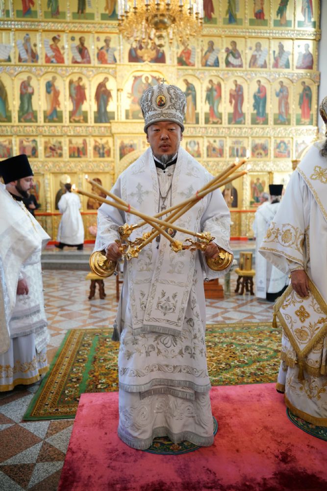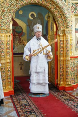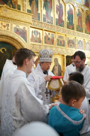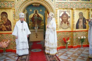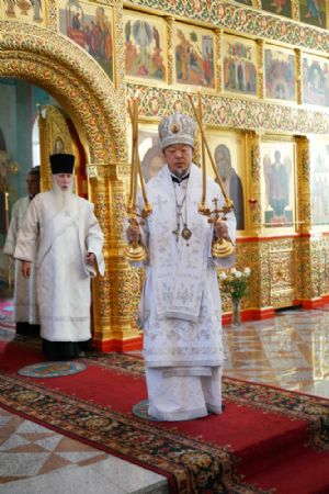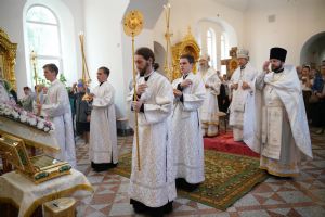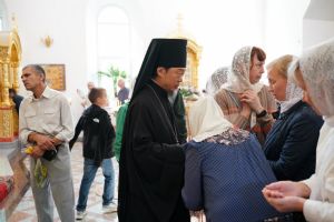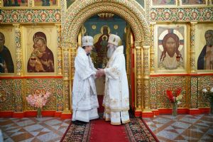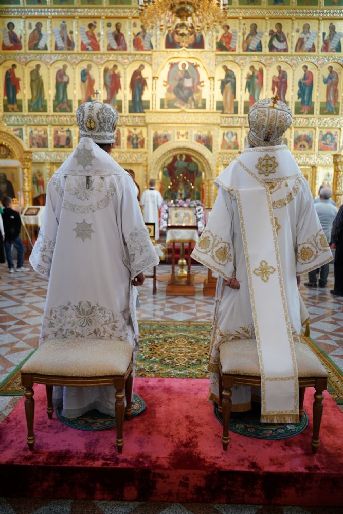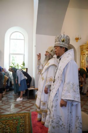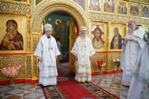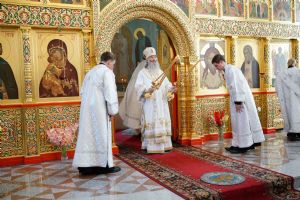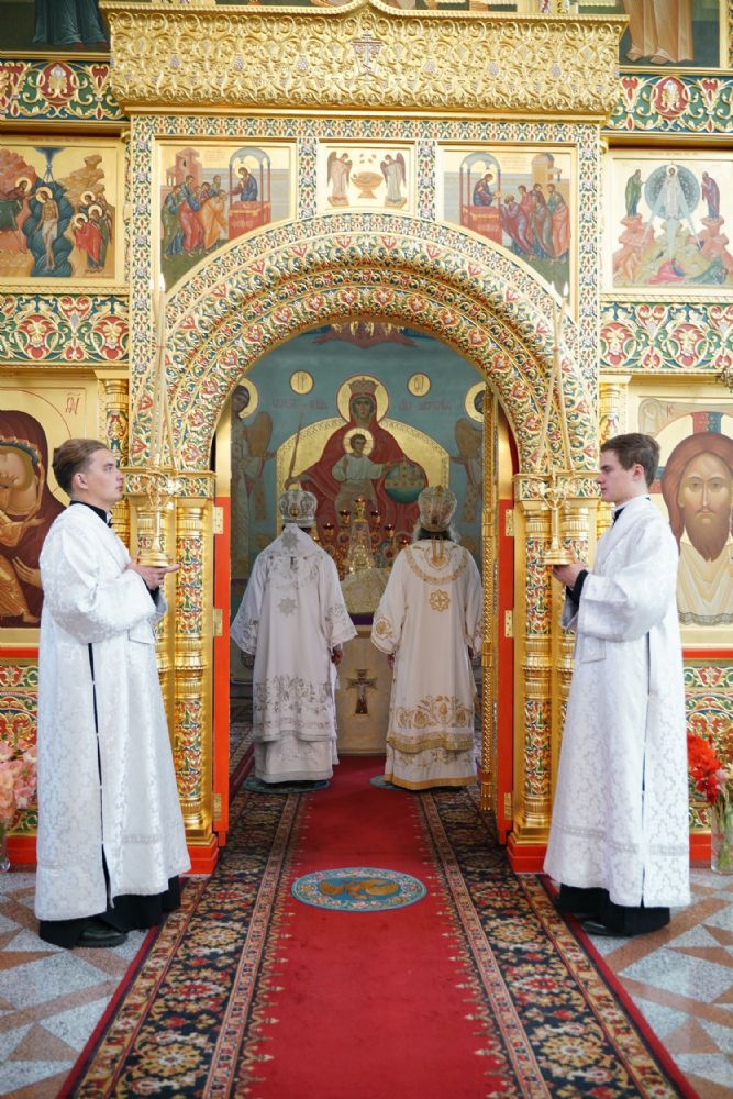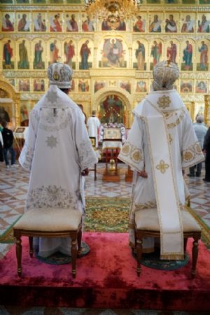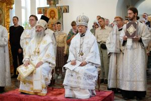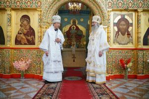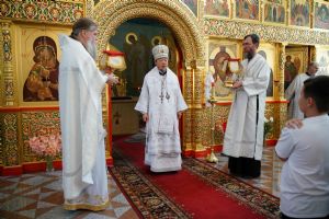 Архипастырям сослужили настоятель храма протоиерей Александр Бачурин, клирики храма иерей Виктор Умрихин и диакон Алексий Ершов, а также протодиакон Михаил Козловский. Пел хор храма под управлением регента Елены Умрихиной.