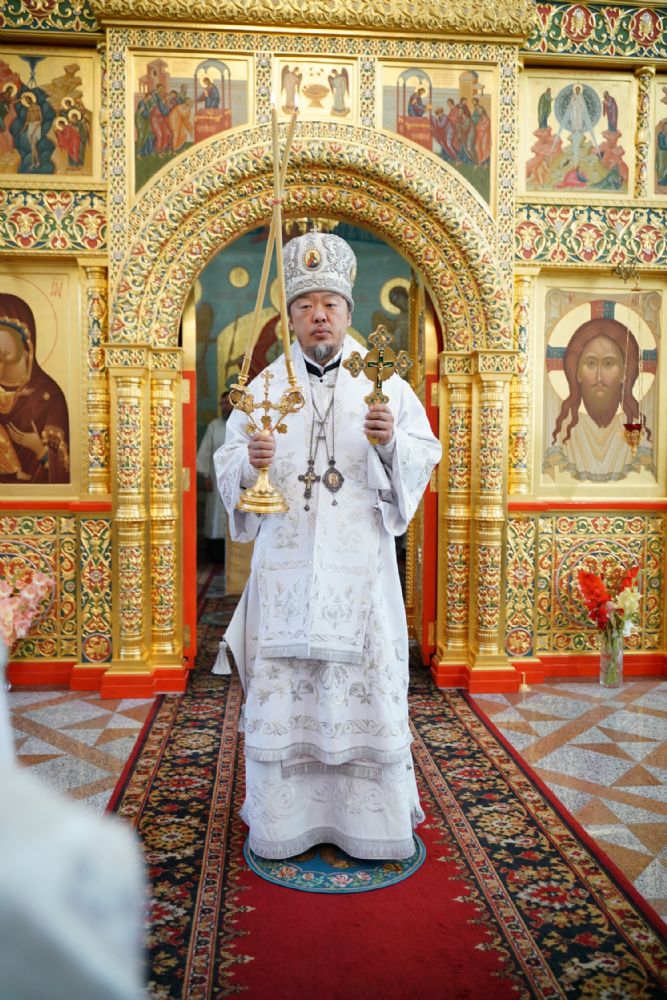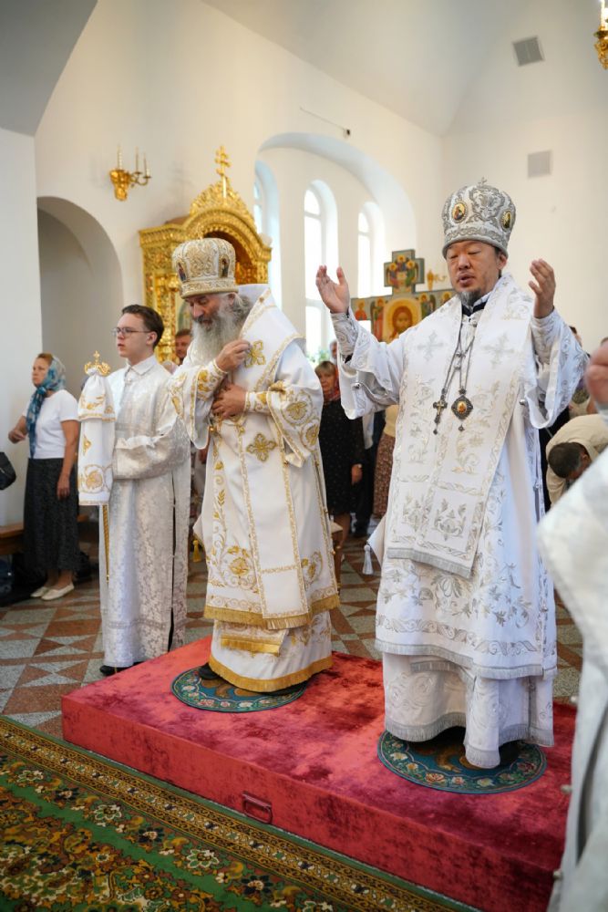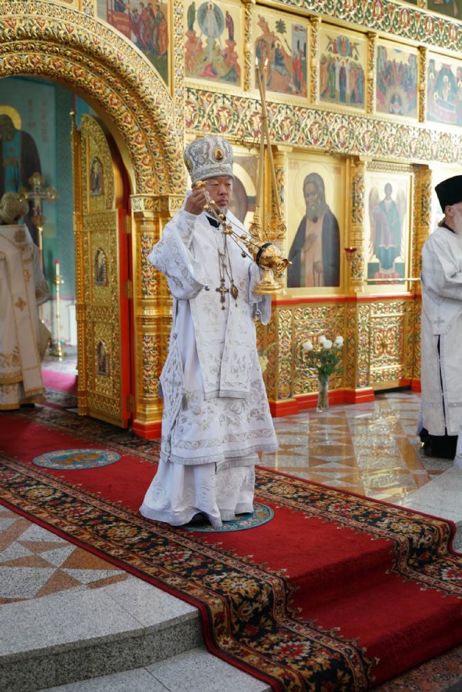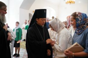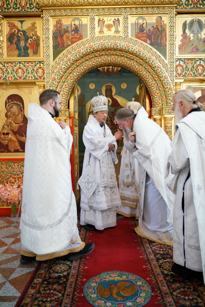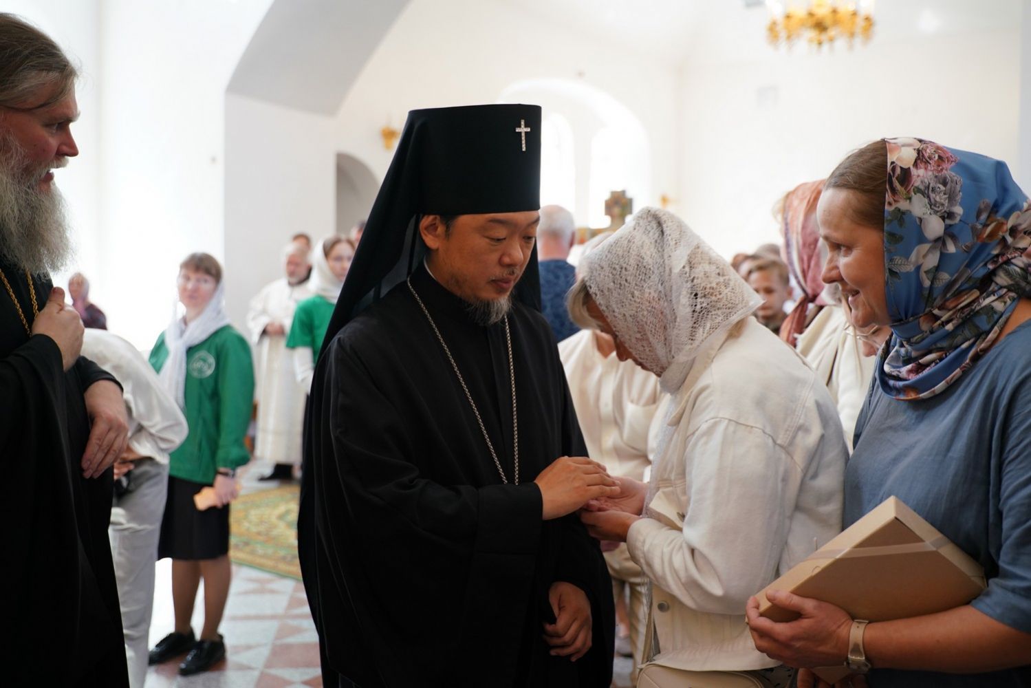 По окончании Литургии митрополит Иоанн поблагодарил архиепископа Феофана за радость совместной молитвы и отметил, что владыка Феофан привез нам благословение с Корейской земли, где до одним из первых миссионеров в начале ХХ века был наш земляк – архимандрит Аверкий (Бойков), могила которого находится возле храма Рождества Пресвятой Богородицы с. Семеновка.
