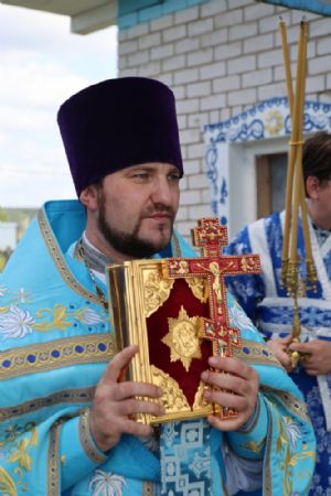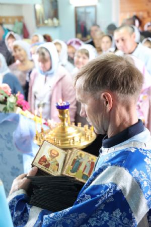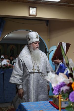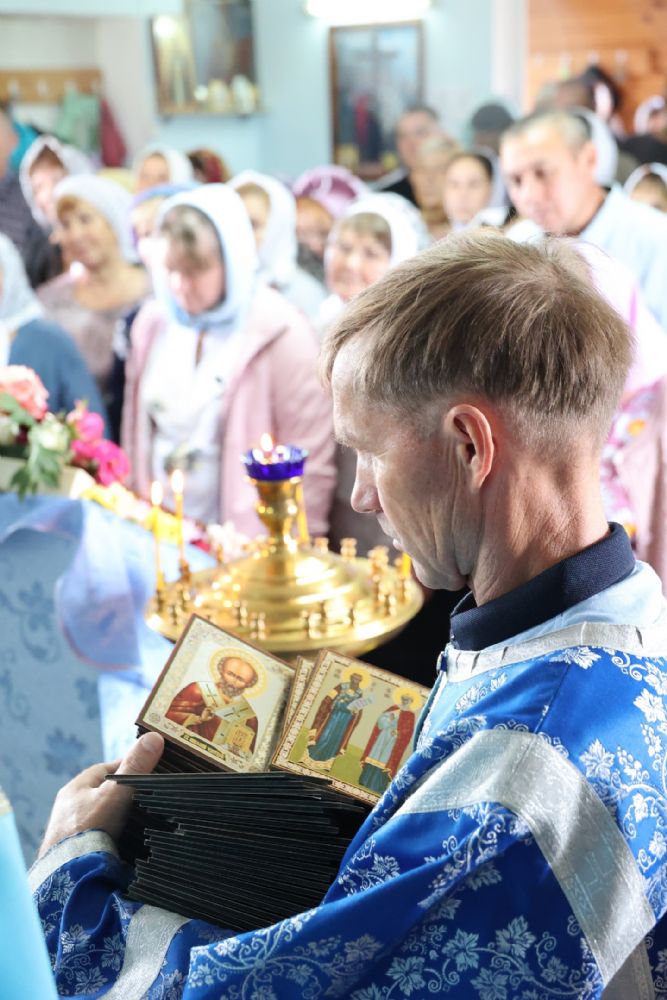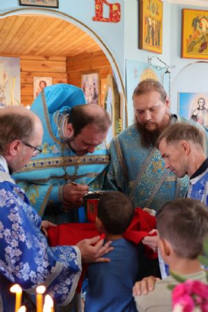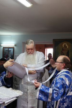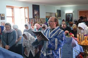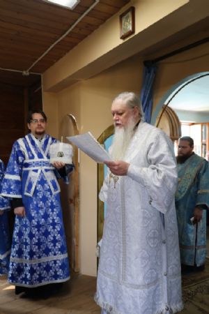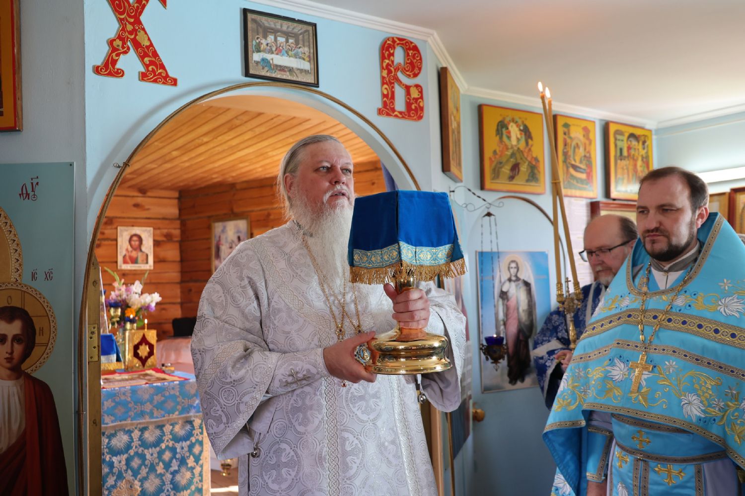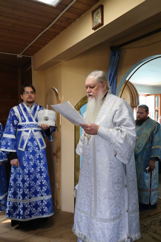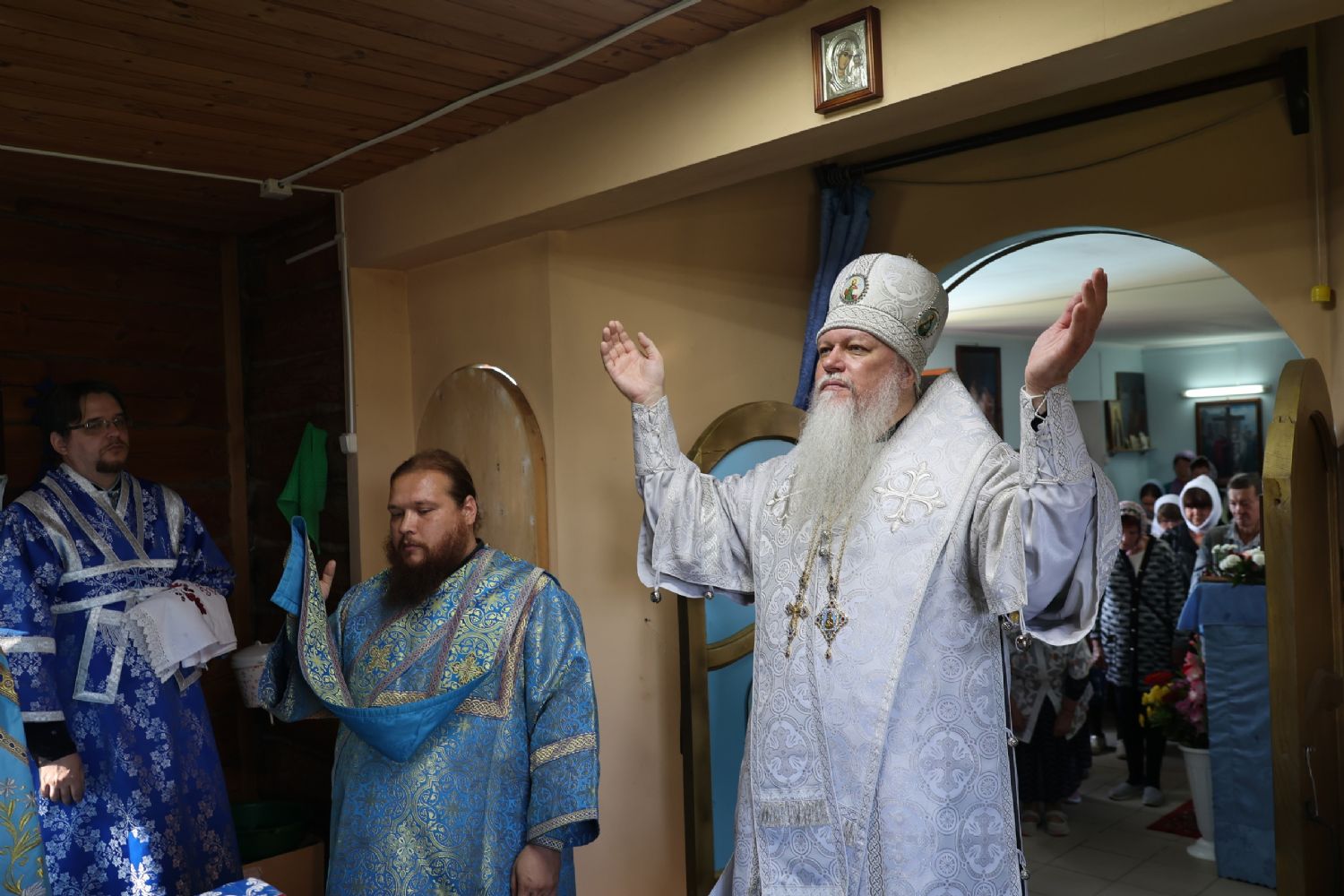 Его Преосвященству сослужили клирики Волжского благочиния иерей Виталий Ульянов и диакон Иоанн Захаров. Песнопения исполнял хор под управлением Марии Захаровой.