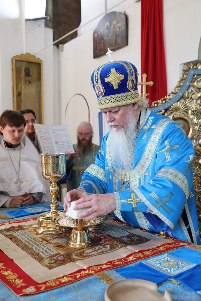 Его Преосвященству сослужили клирики собора протоиерей Александр Михайлов, иерей Иоанн Лапшинский, иерей Александр Усков, иерей Сергий Першаков, иеромонах Авель (Крашенинников), иерей Николай Аникин, иерей Владимир Лапин, диакон Иоанн Захаров, иеродиакон Тихон (Белавин).