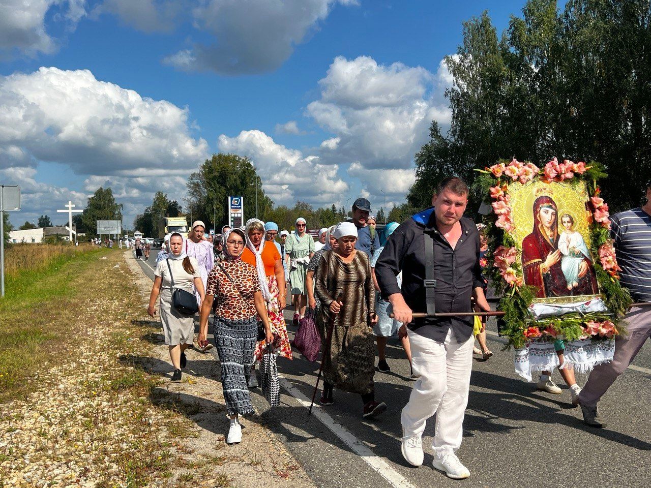 В этом году путь длиной в 110-километров верующие шли с иконой Божией Матери «Оршанская». Молитвенное шествие духовно окормлял настоятель храма Иоанна Предтечи п. Оршанка протоиерей Димитрий Вылекжанин.
