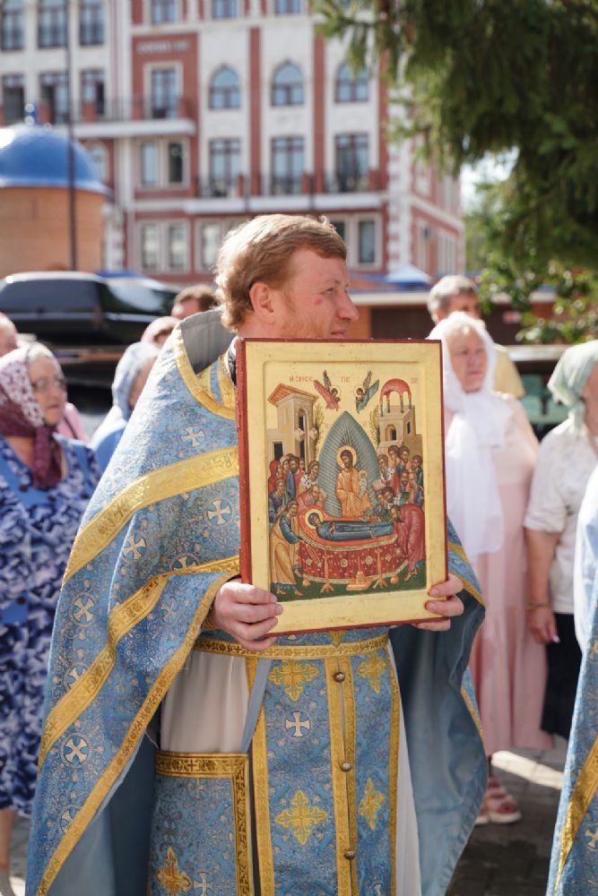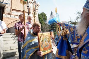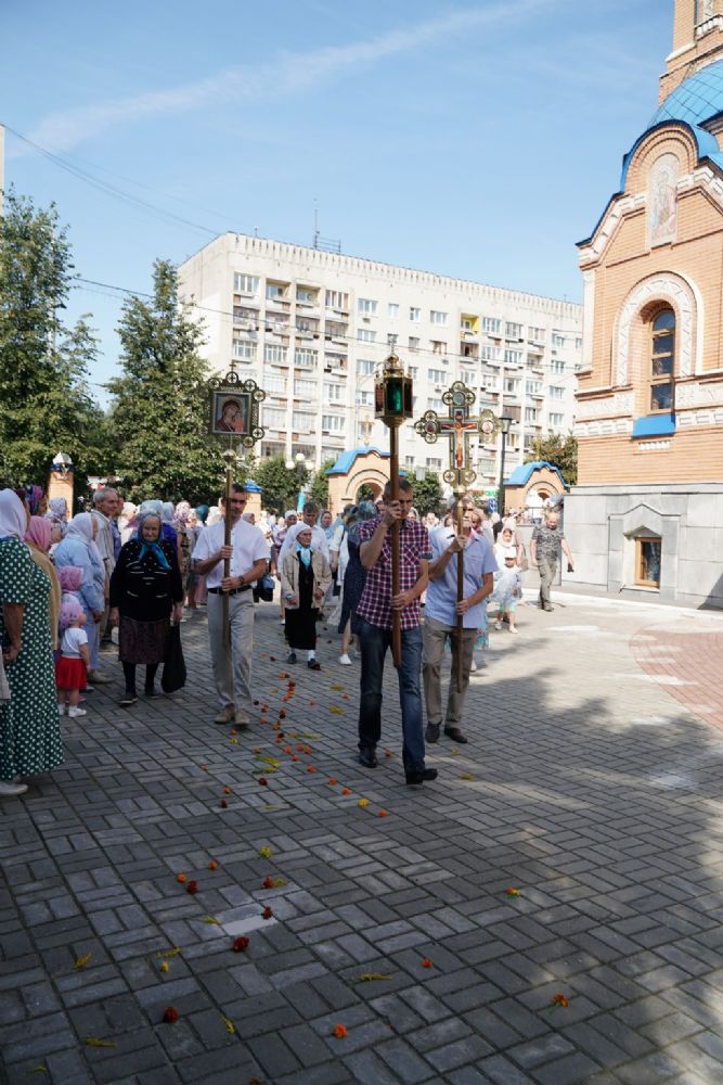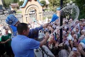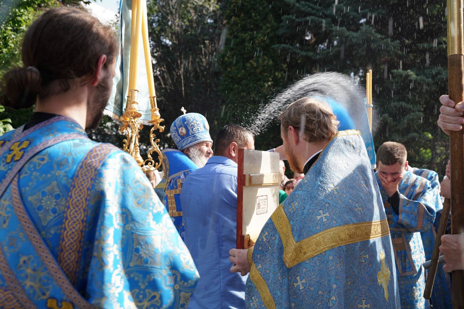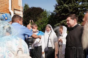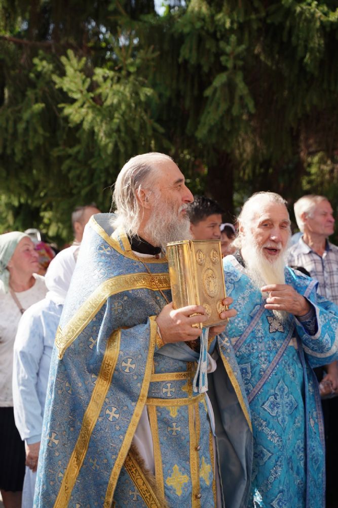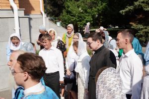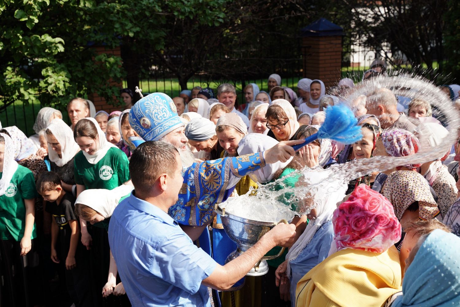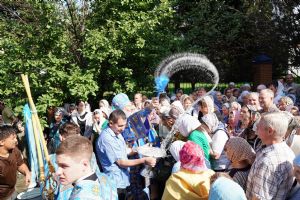 После Литургии, по традиции престольных праздников, прошел крестный ход вокруг храма с чтением Евангелия и кроплением святой водой.