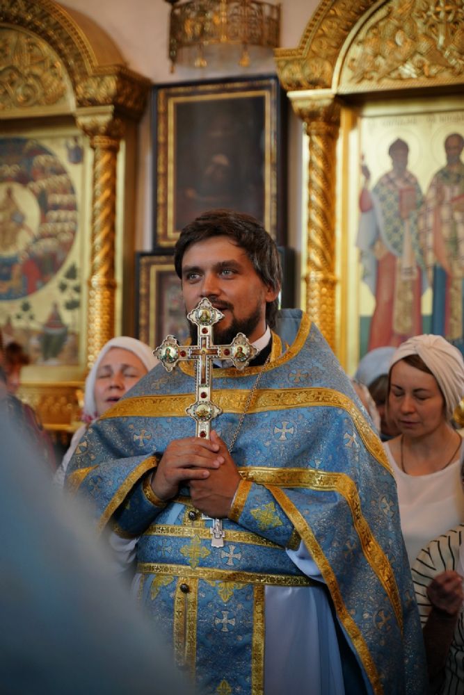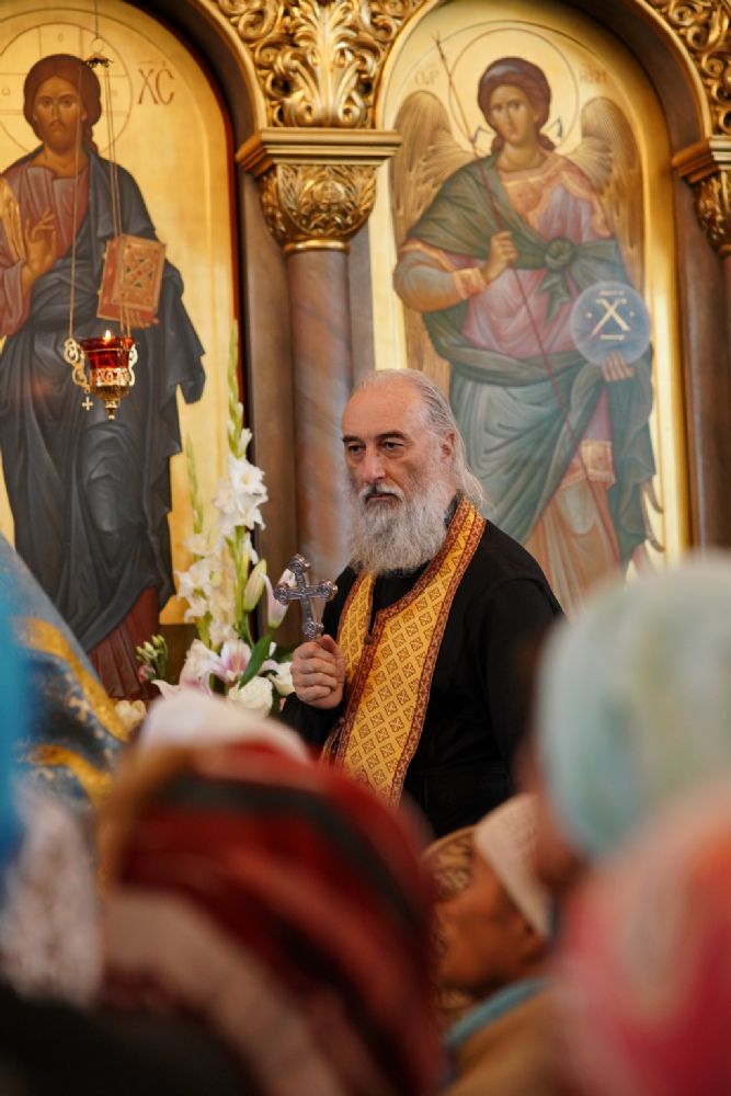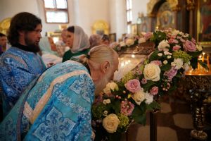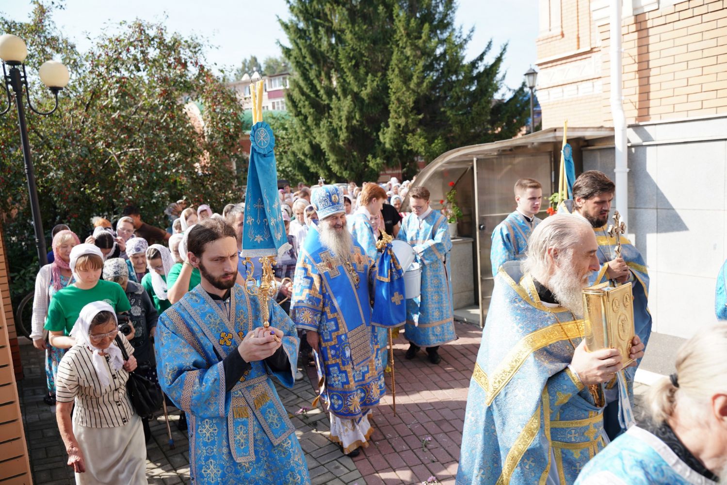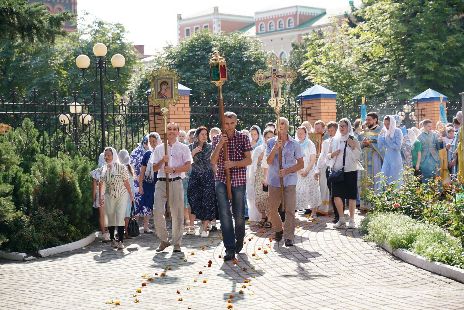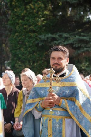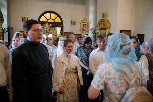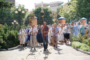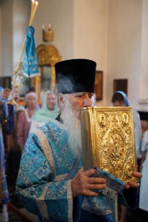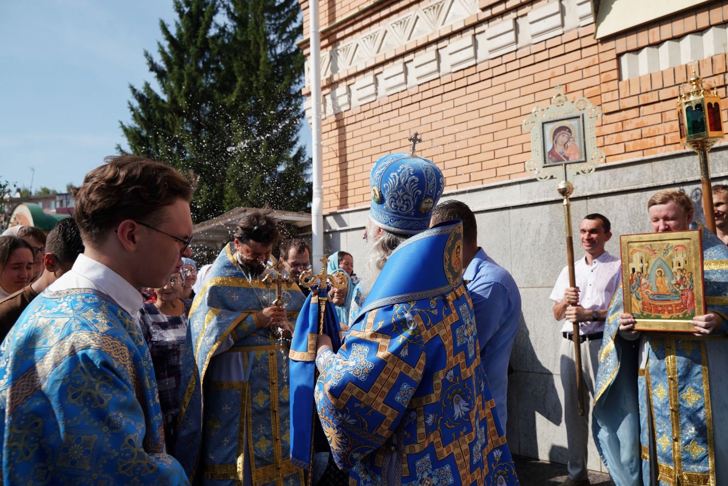 После Литургии, по традиции престольных праздников, прошел крестный ход вокруг храма с чтением Евангелия и кроплением святой водой.