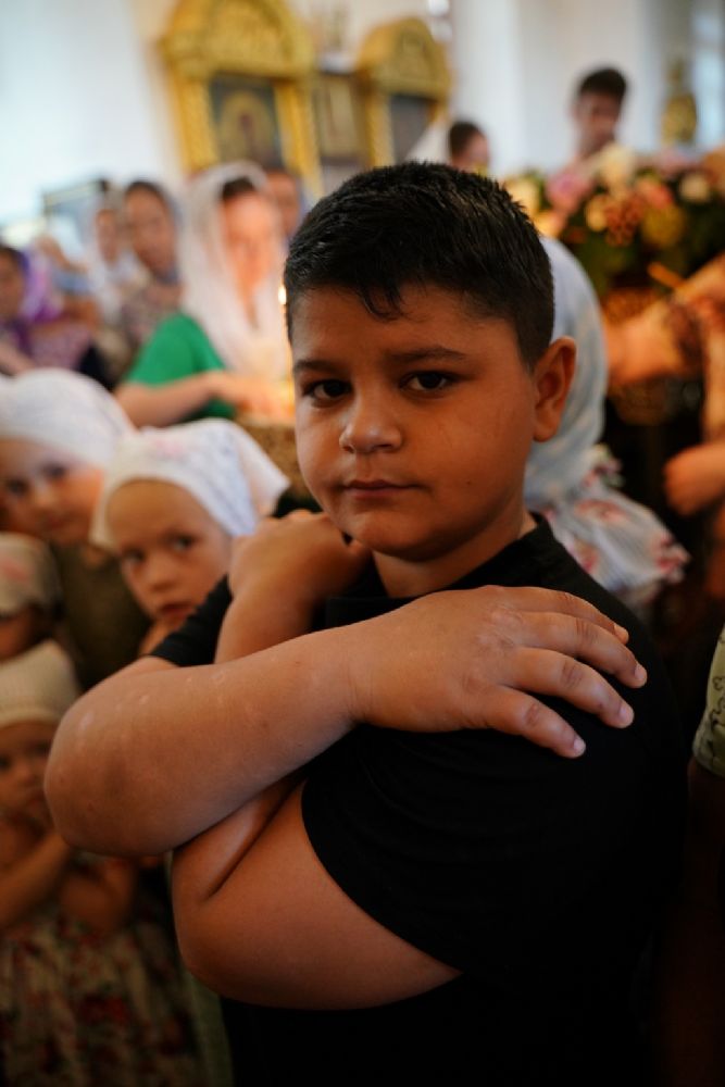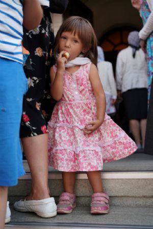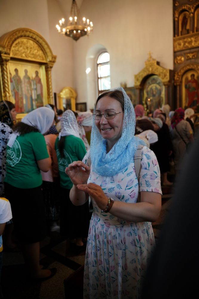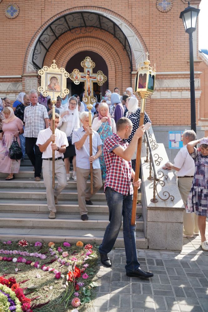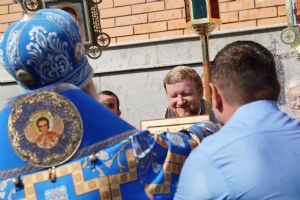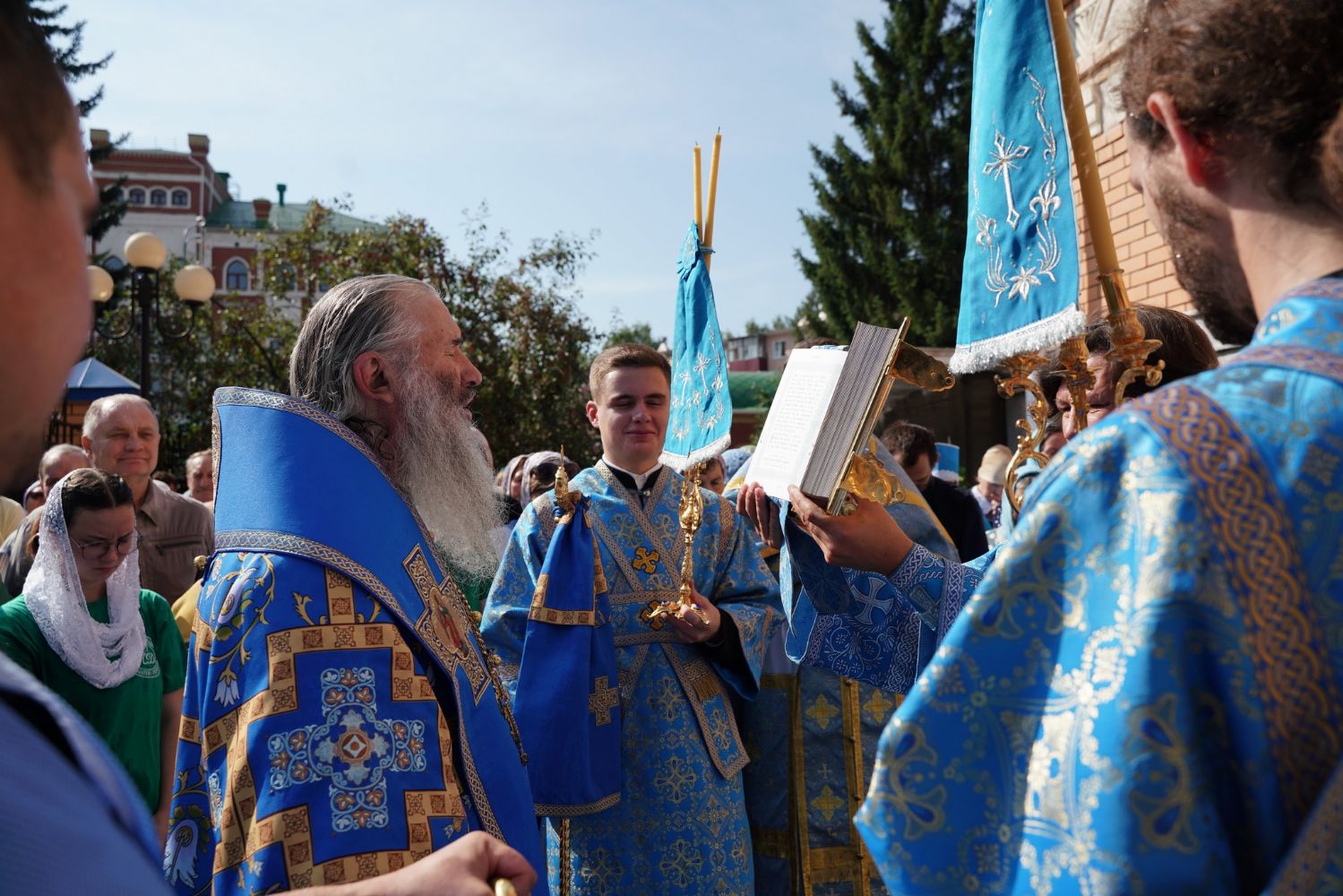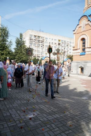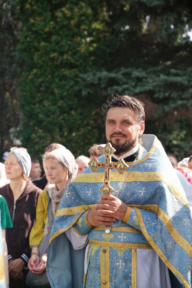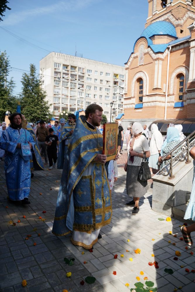 После Литургии, по традиции престольных праздников, прошел крестный ход вокруг храма с чтением Евангелия и кроплением святой водой.