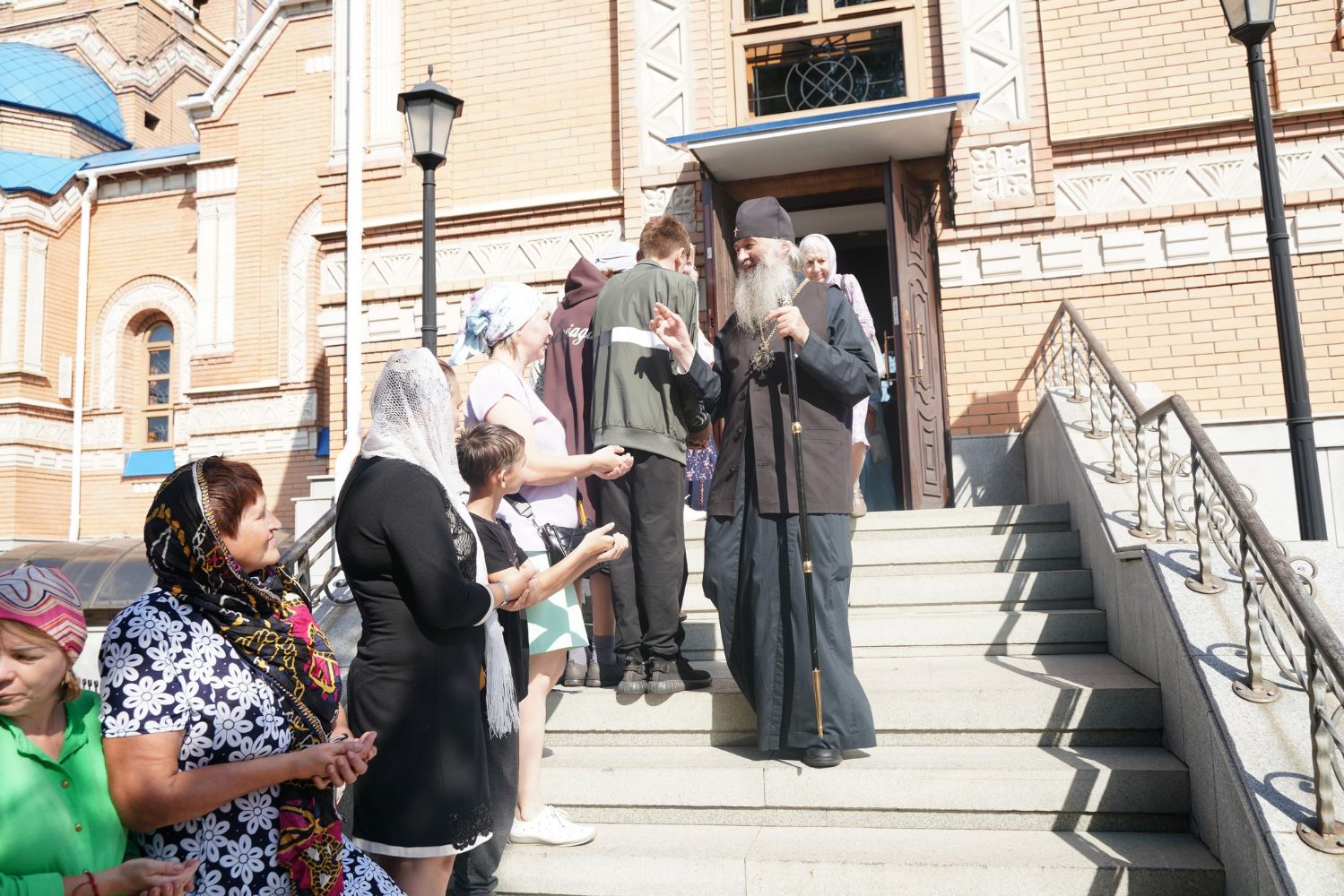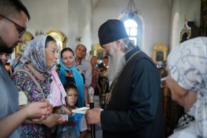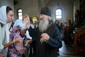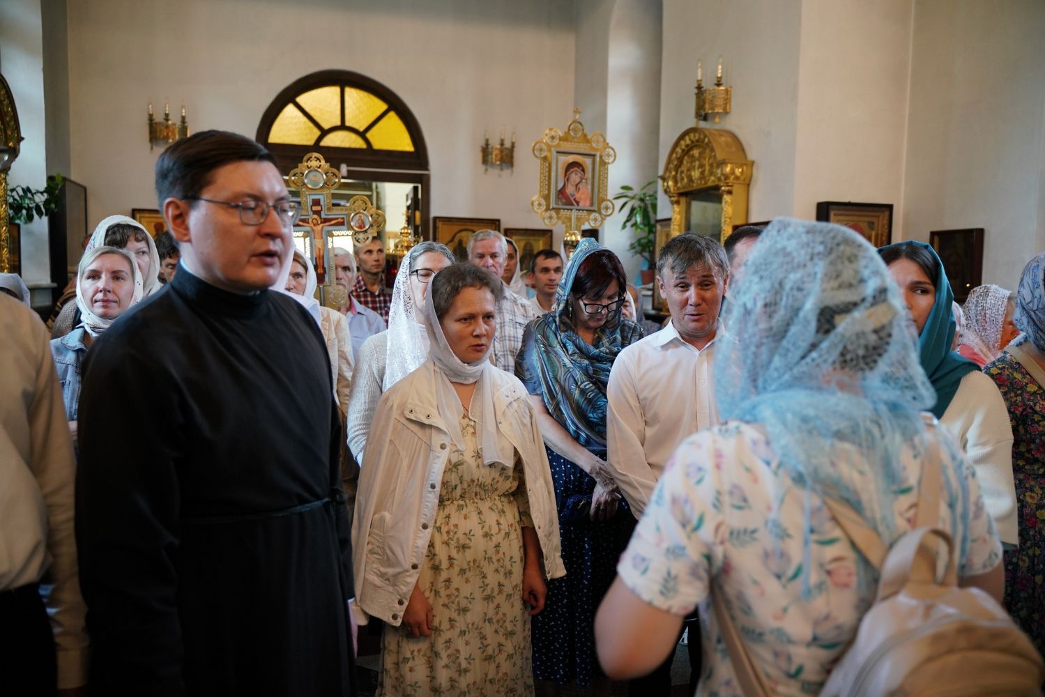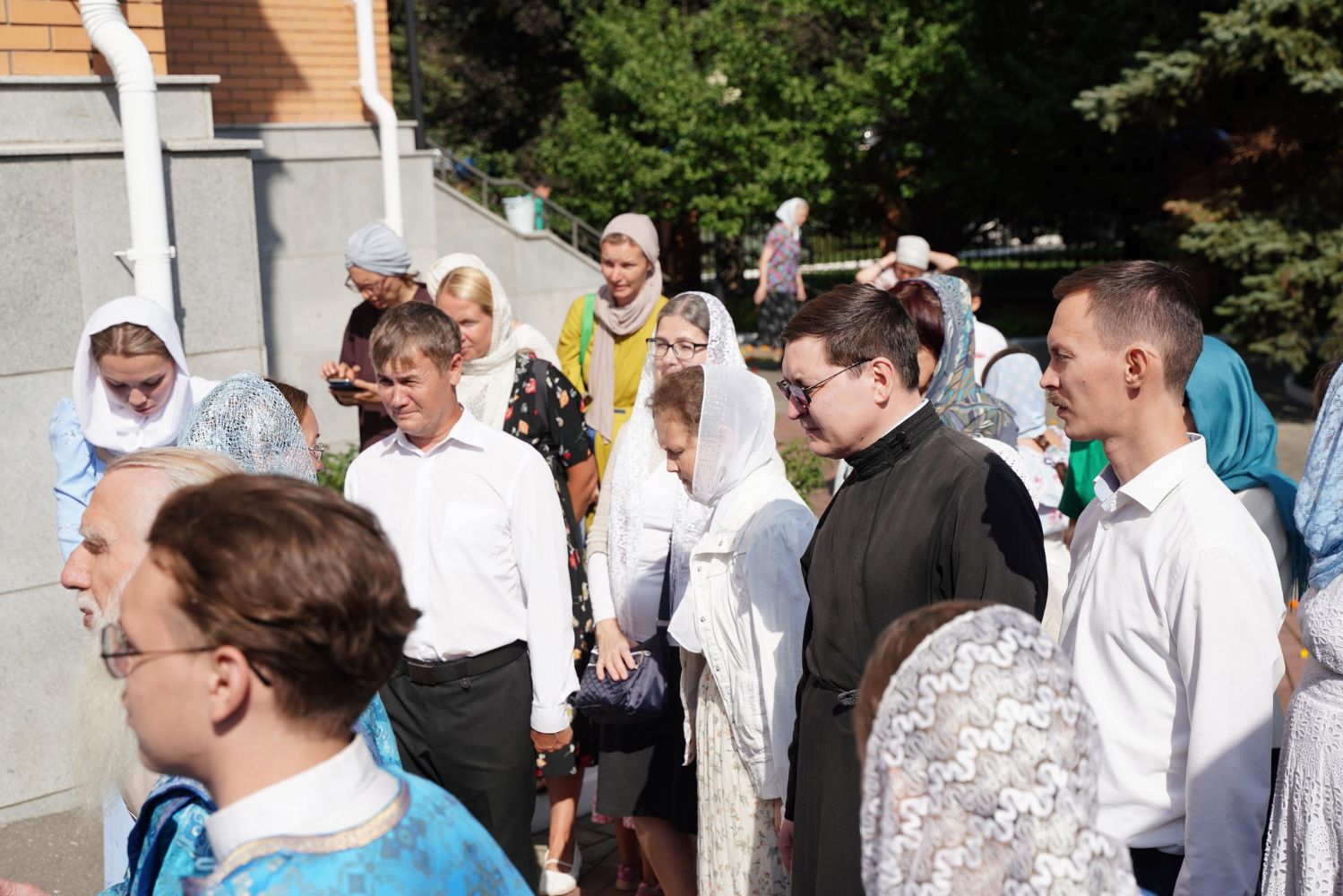 Его Высокопреосвященству сослужили настоятель храма протоиерей Сергий Филонов, клирики храма иерей Никита Иванов, иерей Вячеслав Булычев и диакон Александр Мельников, а также протодиакон Михаил Козловский. Песнопения исполнял хор храма под управлением регента Ольги Акилбаевой.